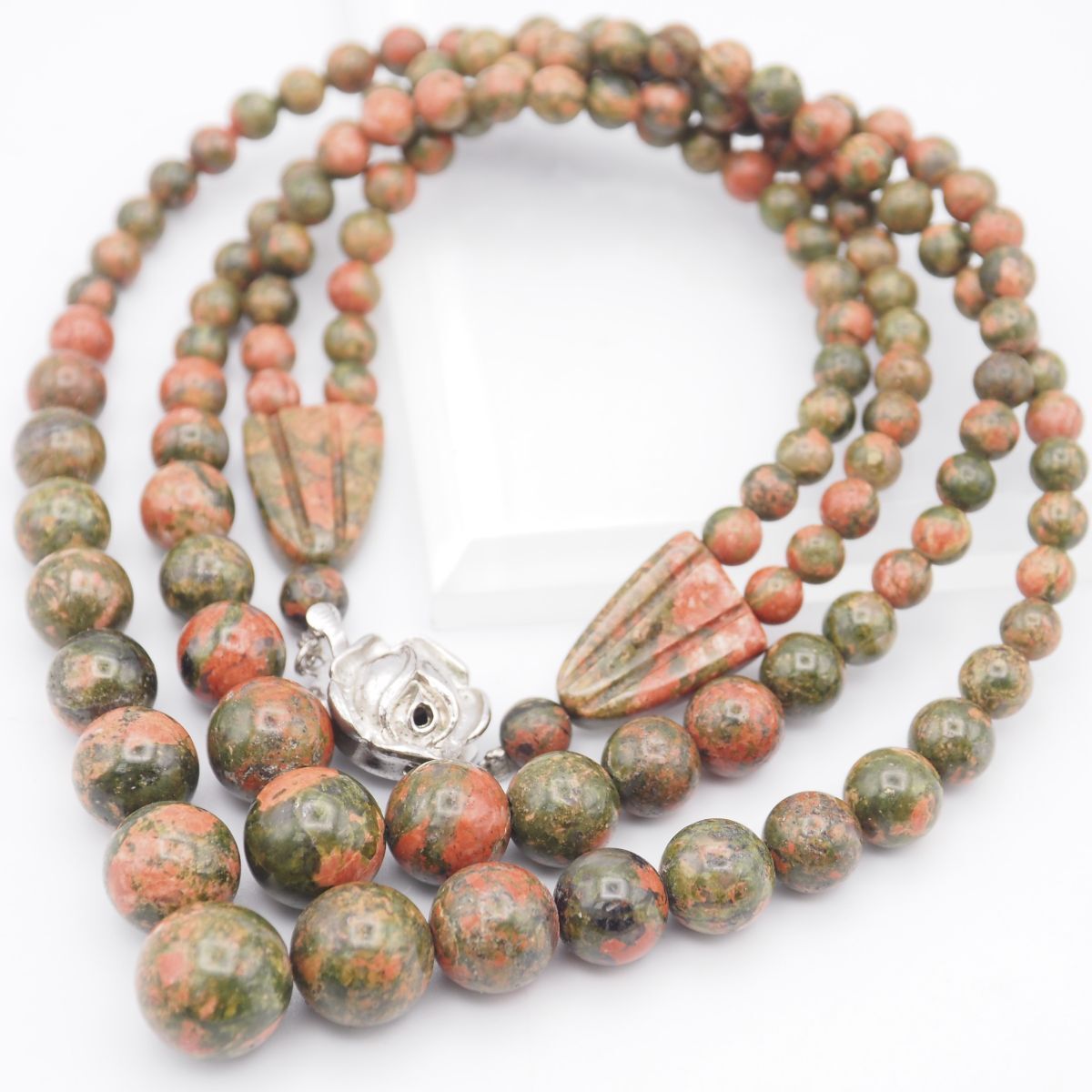 F526 ユナカイト ネックレス 2連 デザイン シルバー
