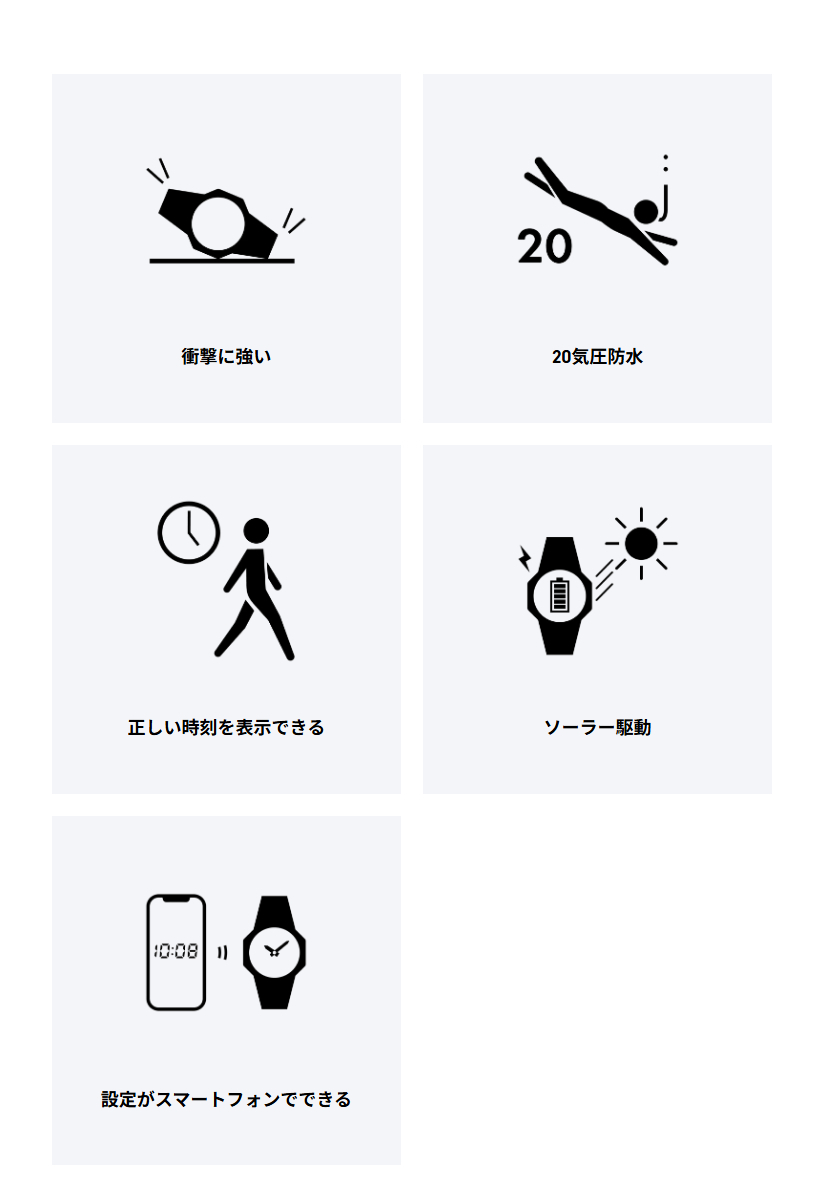 1983年の発売以来、飽くなき強さを求めて進化を続けるタフネスウオッチG-SHOCKから、2100シリーズの特徴であるスリムなサイズ感をキープしながら、スマートフォンリンクとタフソーラーを搭載したモデルです。