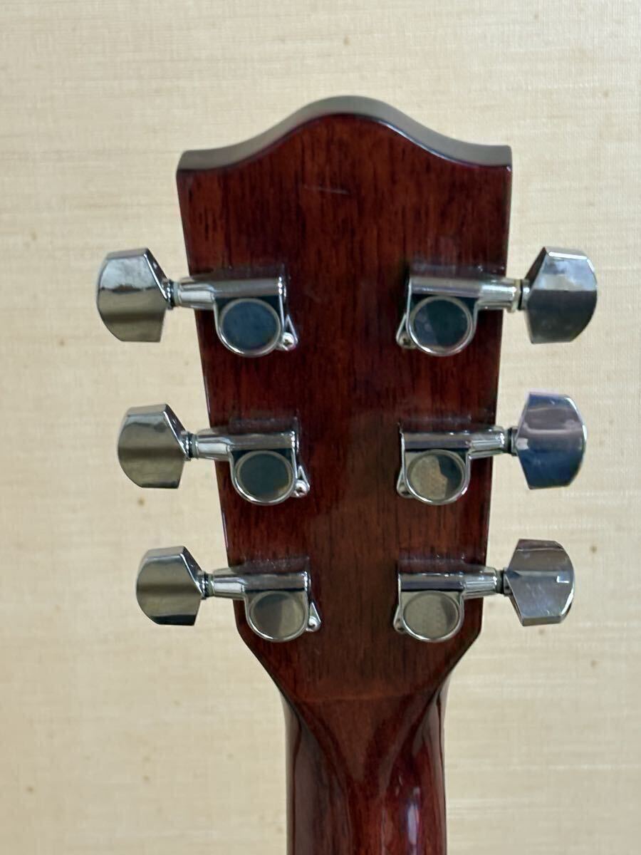 トップはスプルース単板、サイド・バックはサペリ合板です。弦高は1弦約1.9mm、6弦約2.2mmです。現在エクストラライトが付いているので弦が押さえ安く弾きやすいですが、弦交換は4ヵ月ほどしていません。