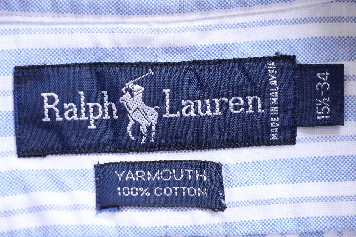 ★90s ラルフローレン YARMOUTH マルチストライプ ボタンダウン オックスフォード コットンシャツ サックス×白 15.5-34★オールド