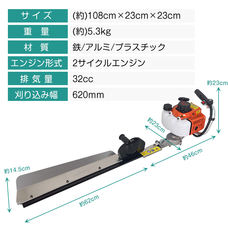【オータムセール」送料無料 ヘッジトリマー エンジン 片刃 620mm 32 手持ち バリカン 剪定 庭木 植木 生垣 庭園 草刈機 ny445