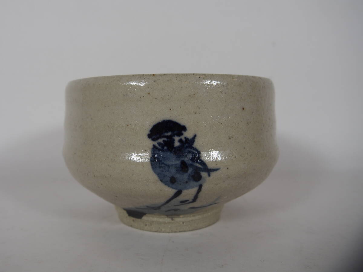 染付 雀絵 抹茶茶碗 茶道具 W-45