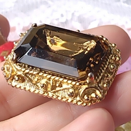 金色の装飾フレームで囲んだヴィンテージブローチ、