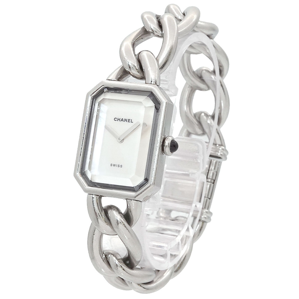 | 商品概要 | シャネルから定番モデルの腕時計『プルミエール』です☆SS(シルバー)×ホワイトシェル文字盤のラグジュアリーな配色は、チェーンショルダーをイメージさせ高級感があり、どんなスタイルにも合わせやすい、おすすめの逸品です♪ |