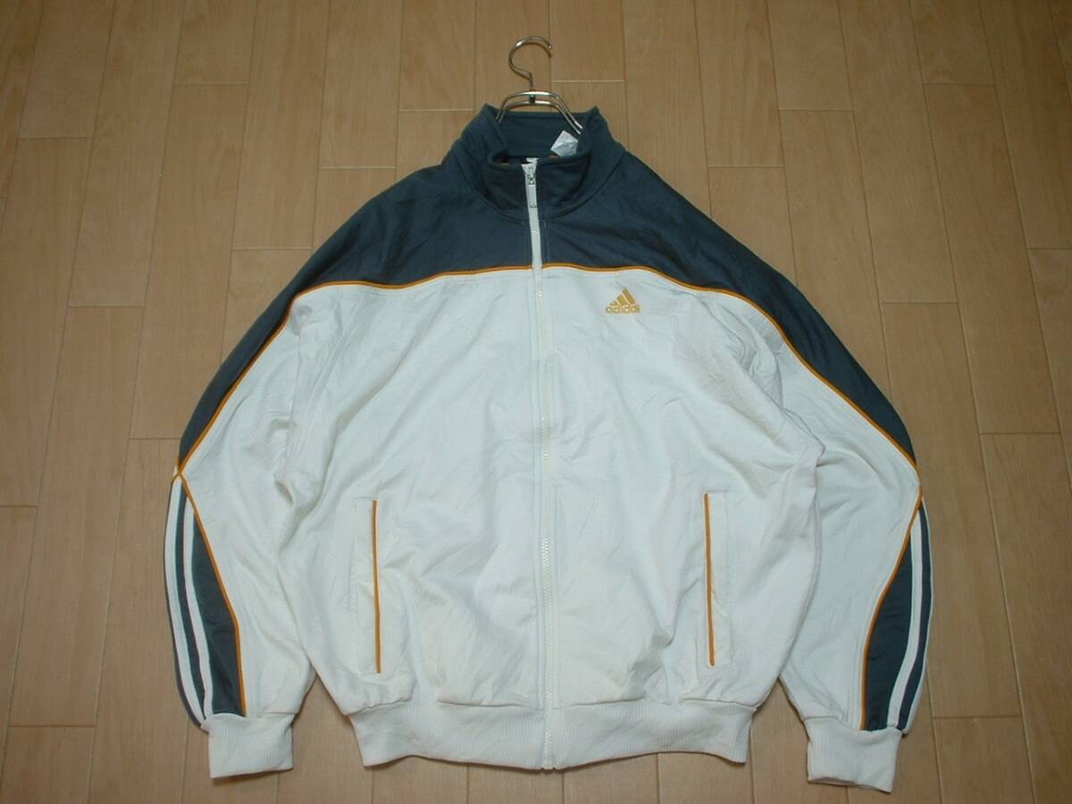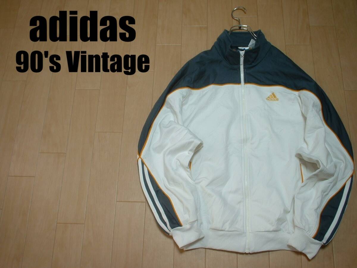 90sビンテージadidasスリーストライプスジャージトップ万国旗タグO白ホワイトXLグレー正規アディダストラックジャケットパフォーマンスロゴ