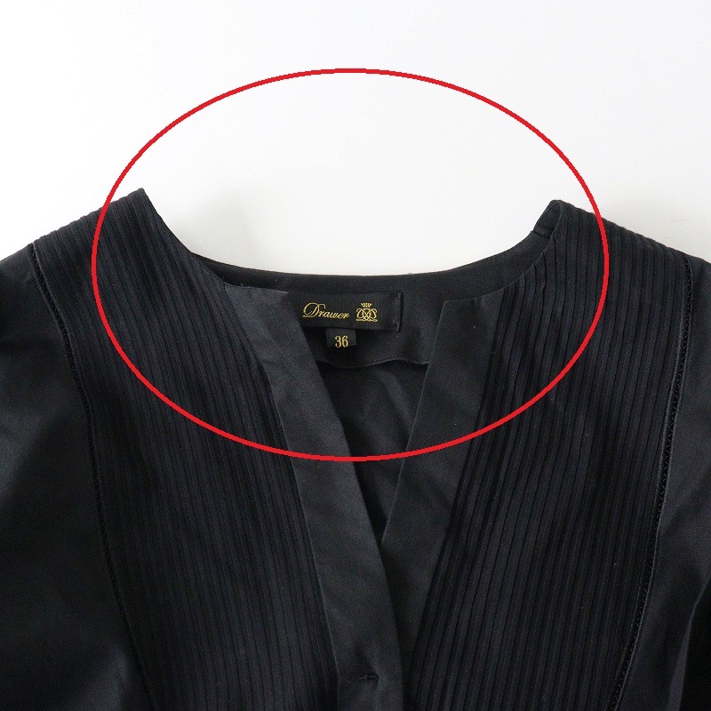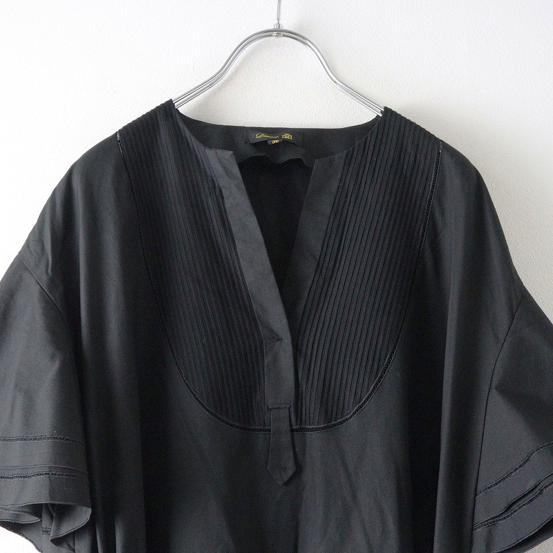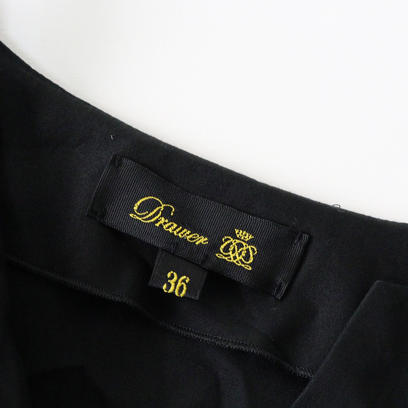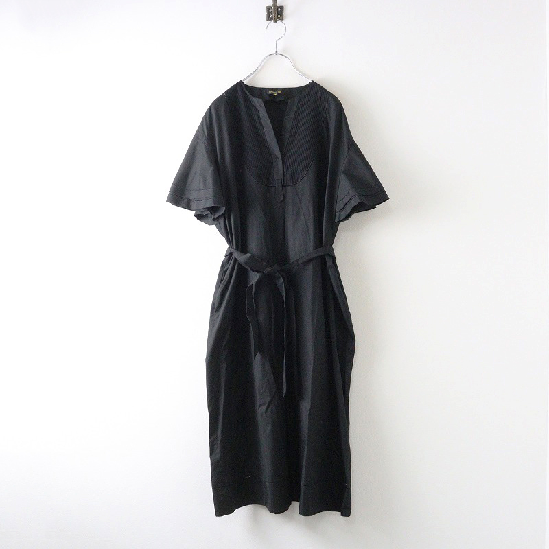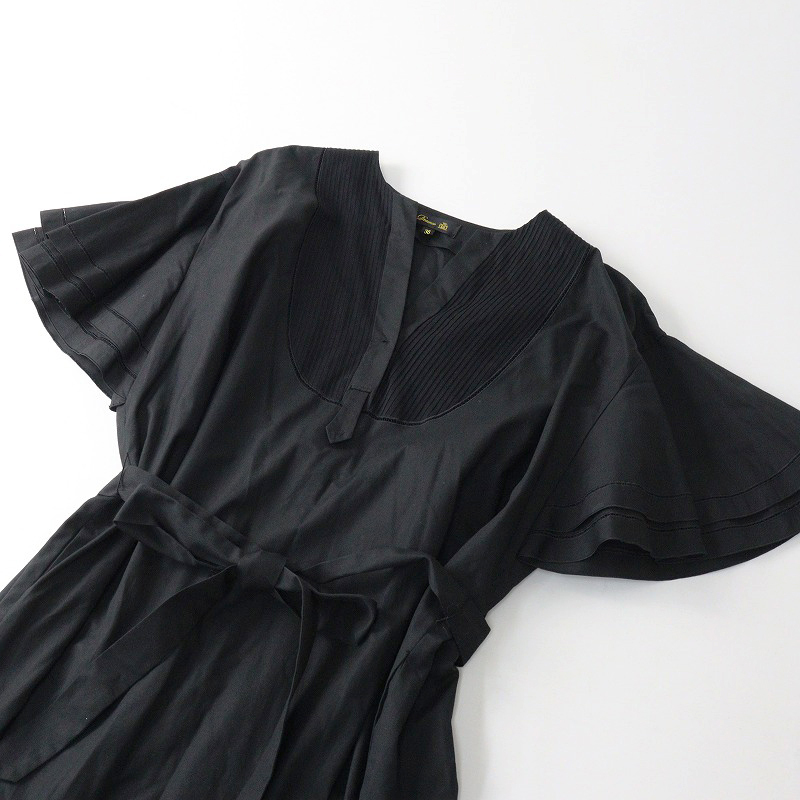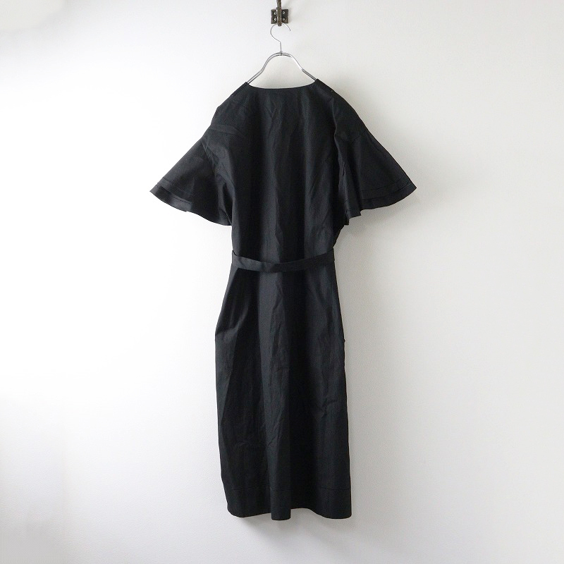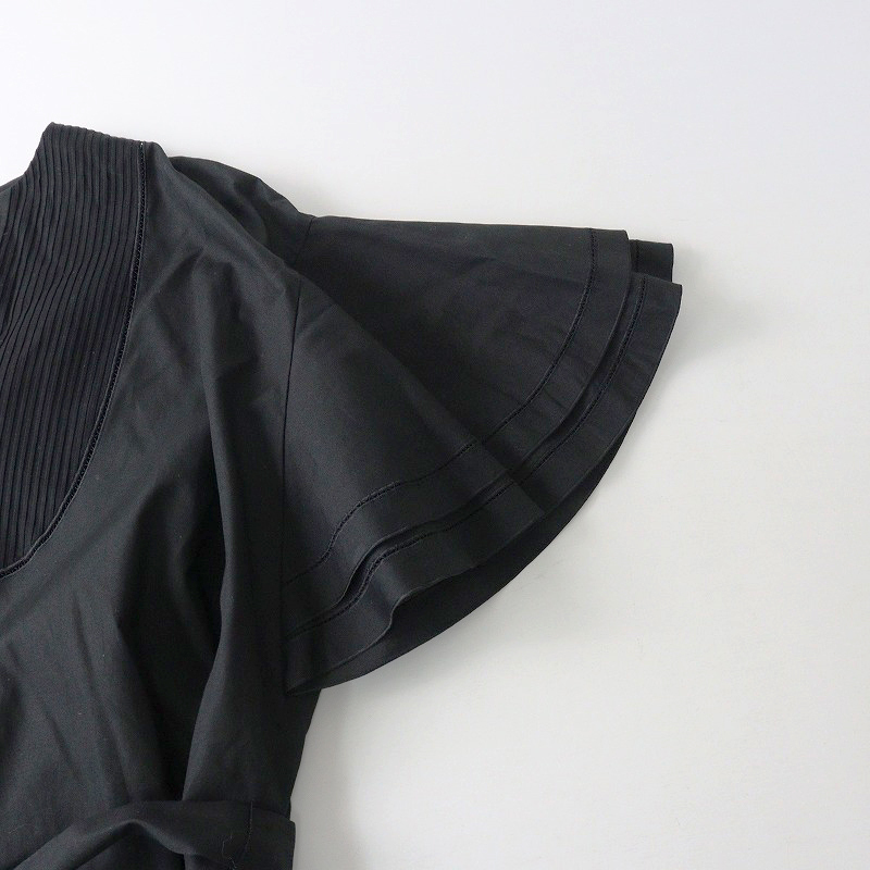 定価8.2万 ドゥロワー Drawer ブサムフレアスリーブドレス 36\ブラック ピンタック ワンピース コットン ベルト【2400014604634】