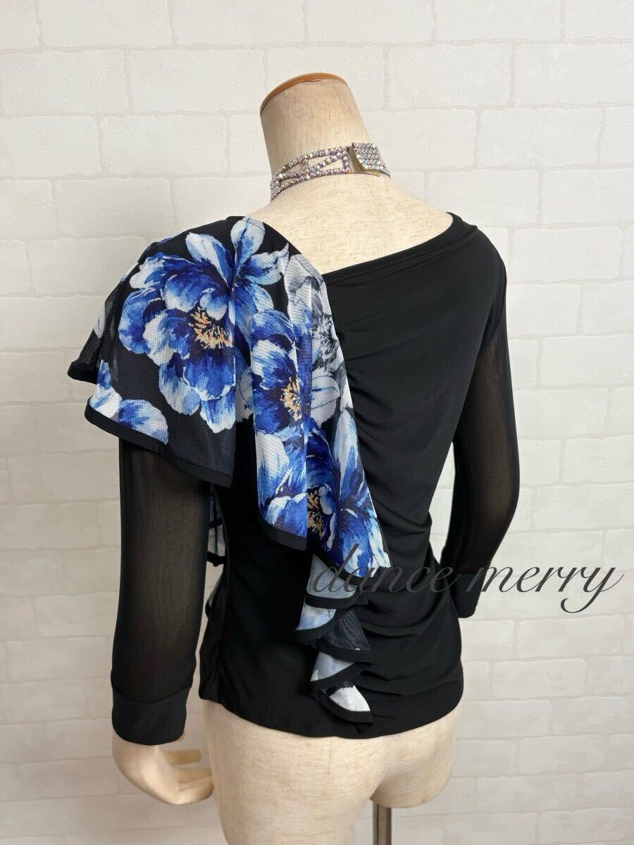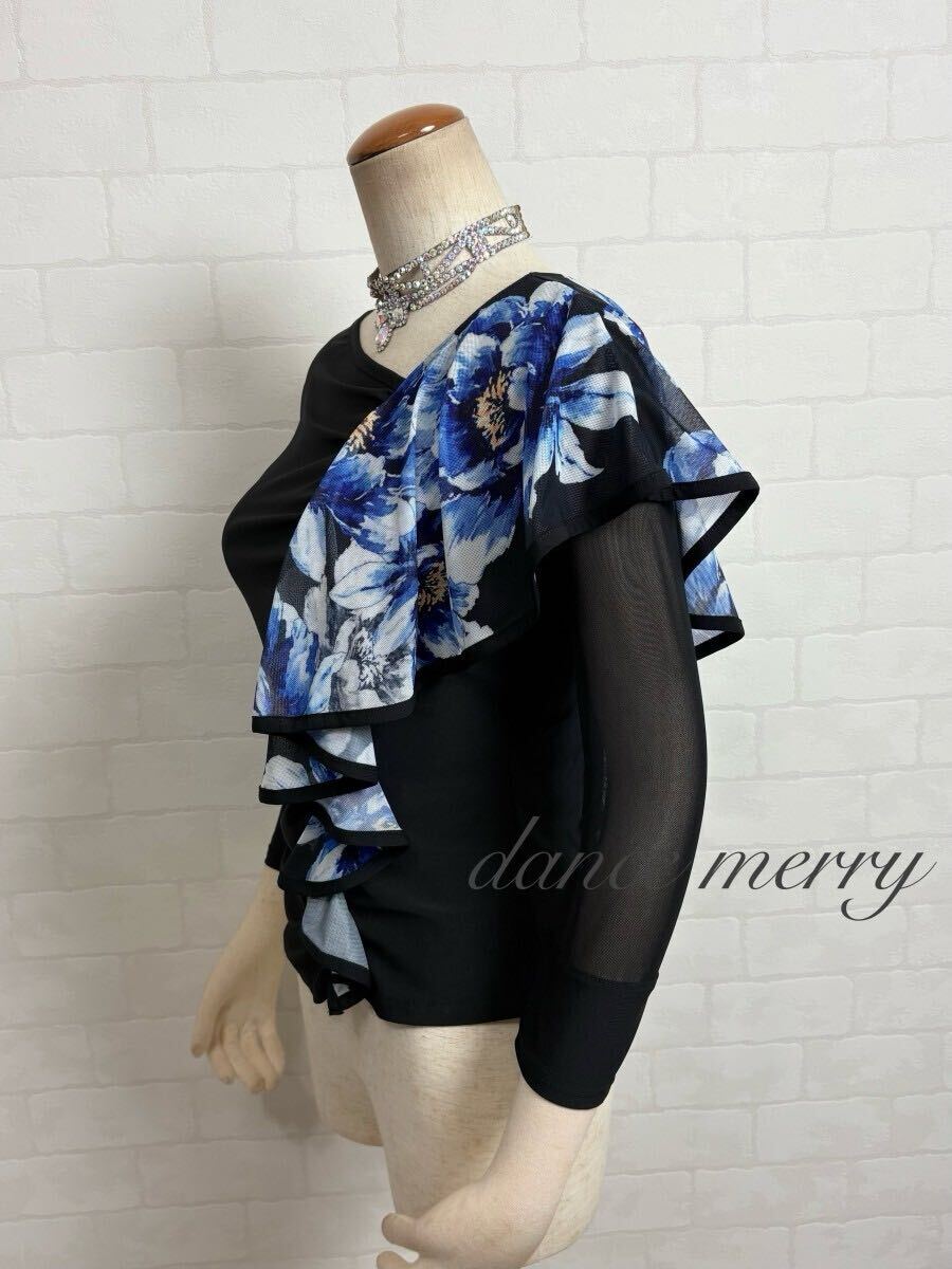 肌ざわりの良いストレッチ素材、メッシュを使用した社交ダンス トップスです。
