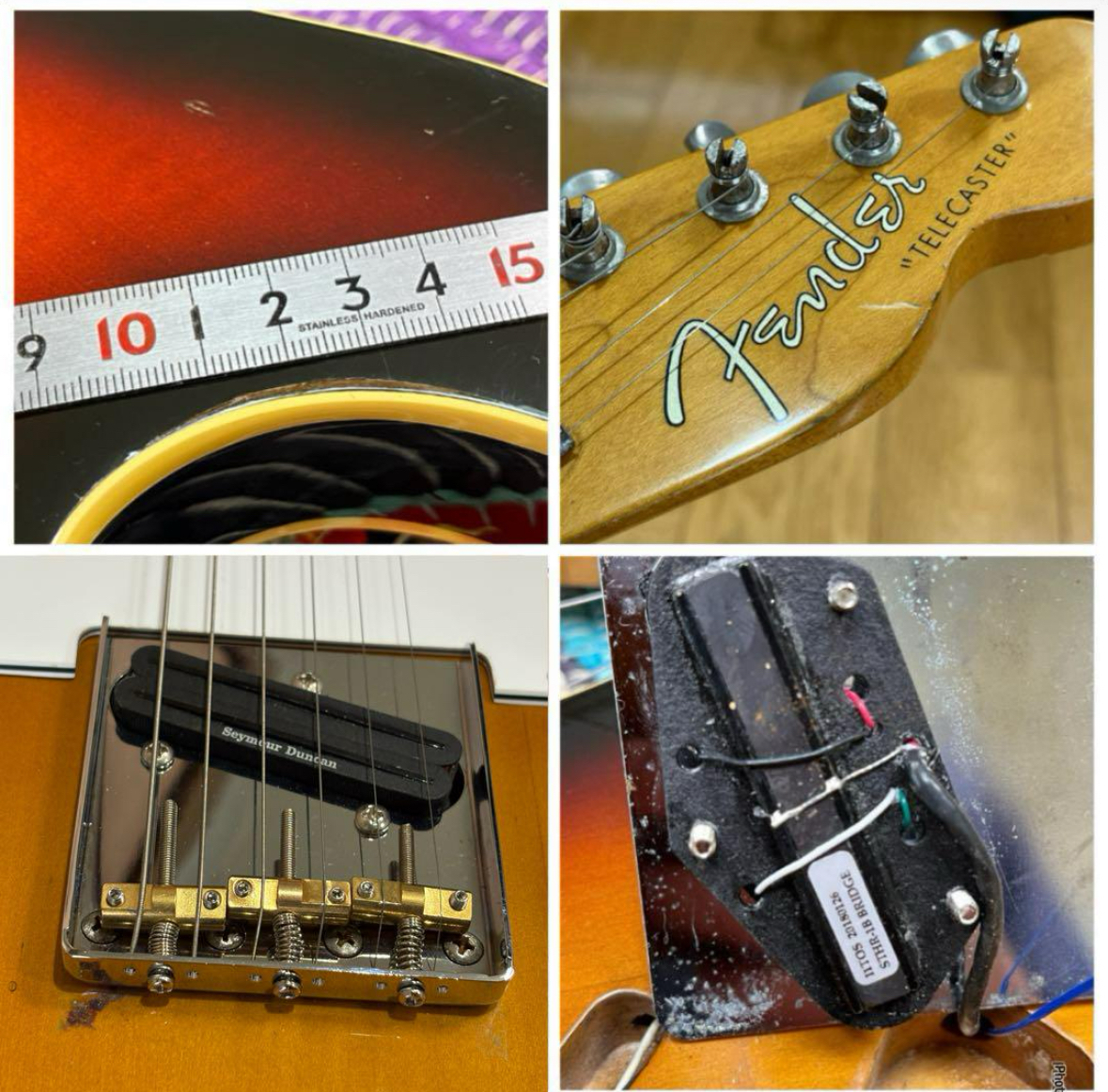 フェンダージャパン定番モデルのTL-62B・テレキャスターです。 ネックポケット及びネックエンドにTLC-62Bのスタンプがあります。 ネックエンドに85年の日付けが記入されています。 リアピックアップがSeymour Duncan/STHR-1b Hot Rails Tele Bridgeに交換されています。 ピックガードが新しいものに交換されています。 ブリッジが6WAYが付いていましたが新しく3wayに交換しました。 シリアルナンバーが削られています。 重さ およそ 3.7キロ スケール 648mm およそ1弦12フレット弦高 1.5mm 6弦12フレット弦高 2.5mm 状態は 清掃・弦交換済 ローフレット1〜5f辺りに各弦の下に凹みがあります。 フレットに減りがみられますがビビリや音のつまりはなく、演奏面では問題ない印象を受けました。 ボディ背面のバインディングの一部剥離があります その他、擦り傷、磨き傷、打コン、金属部のサビなどが見られます 音出し確認済、現状ガリや接触不良はありません。 トラスロッド左右調整可能 極端なネックの反りはないと思います。 弦高が高い・低いなど、チェック時では許容範囲内だと思いました。 ケースは付属しません。 その他、こちらで確認が取れていない点があるかもしません。記載がなくてもノークレームでお願いします 他、状態に付きまして気になる箇所等がございましたら、質問欄にてお気軽にお問い合わせ下さい。 なお、質問欄におきまして 即決・早期終了・値下げ交渉・依頼などは一切対応するつもりがございませんので書き込まないで下さい。 送料は地域によって¥2000~¥5000程度(沖縄¥5000以上) 他、状態に付きまして気になる箇所等がございましたら、質問欄にてお気軽にお問い合わせ下さい。 なお、質問欄におきまして即決・早期終了・値下げ交渉・依頼などは一切対応するつもりがございませんので書き込まないで下さい。 配送はクロネコヤマトの予定、配送方法の指定は対応しておりません。 ノークレームノーリターンご理解の上ご入札下さい。 他にも多数出品しております。 出品リストからご覧下さい。