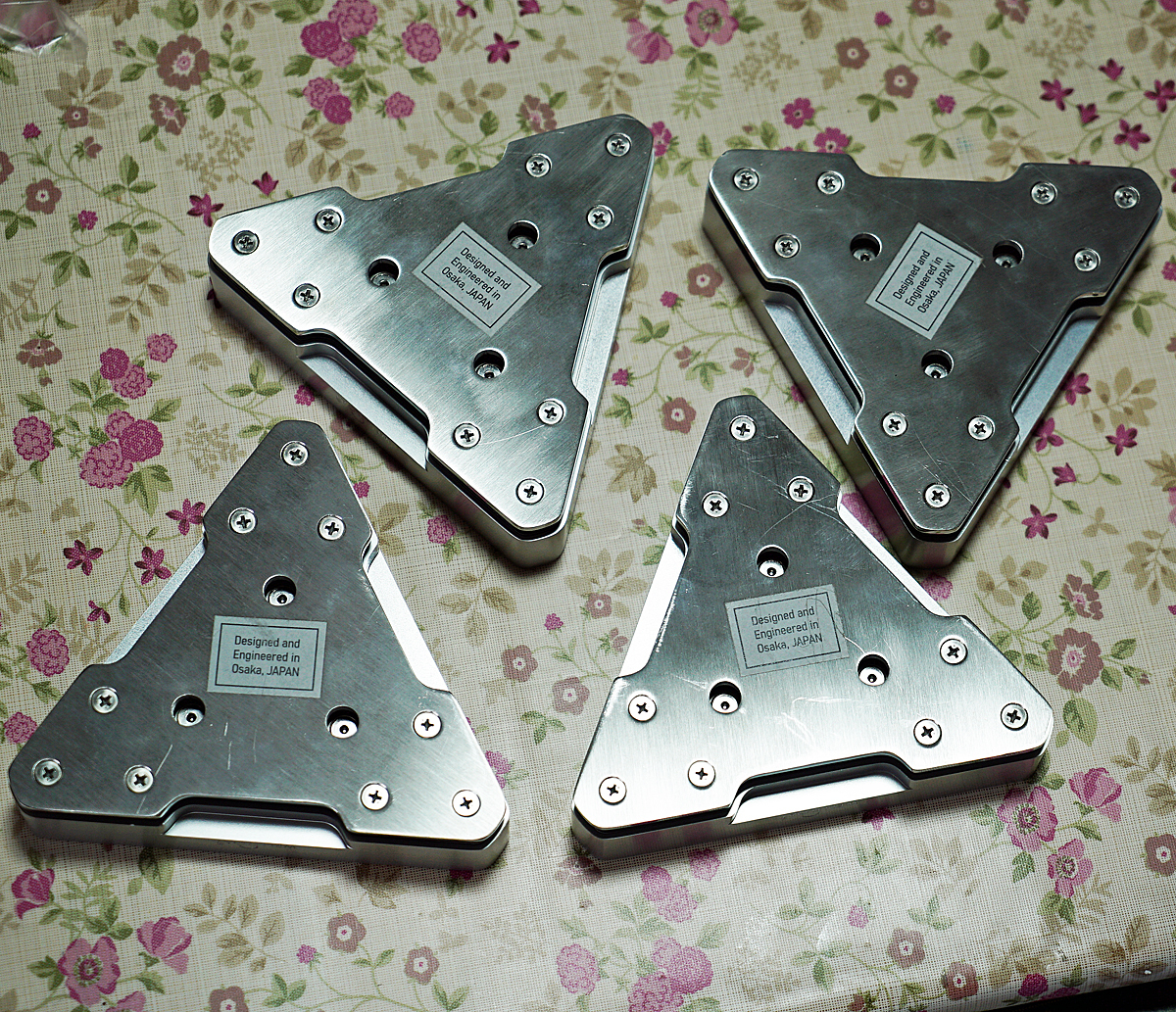 振り子構造の画期的なオーディオ用インシュレーター Wellfloat のWELLDELTA Bsilis 4 個です。