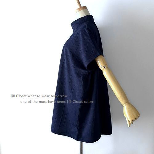 新品【送料185円】伸縮◎エンボス加工 重ね着/レイヤードスタイルに最適♪ボトルネック*ストレッチ素材*プルオーバー* チュニック6904.NV