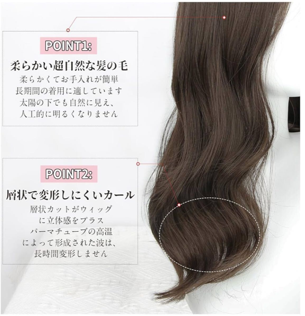 高品質の高温ファイバーで作られており、カットもアイロンもOk (120度以内をおすすめ) 自然な光沢、人毛に近い、シルクのように柔らかい手触りがあり、視覚的にも触覚的にもよりリアルです。
