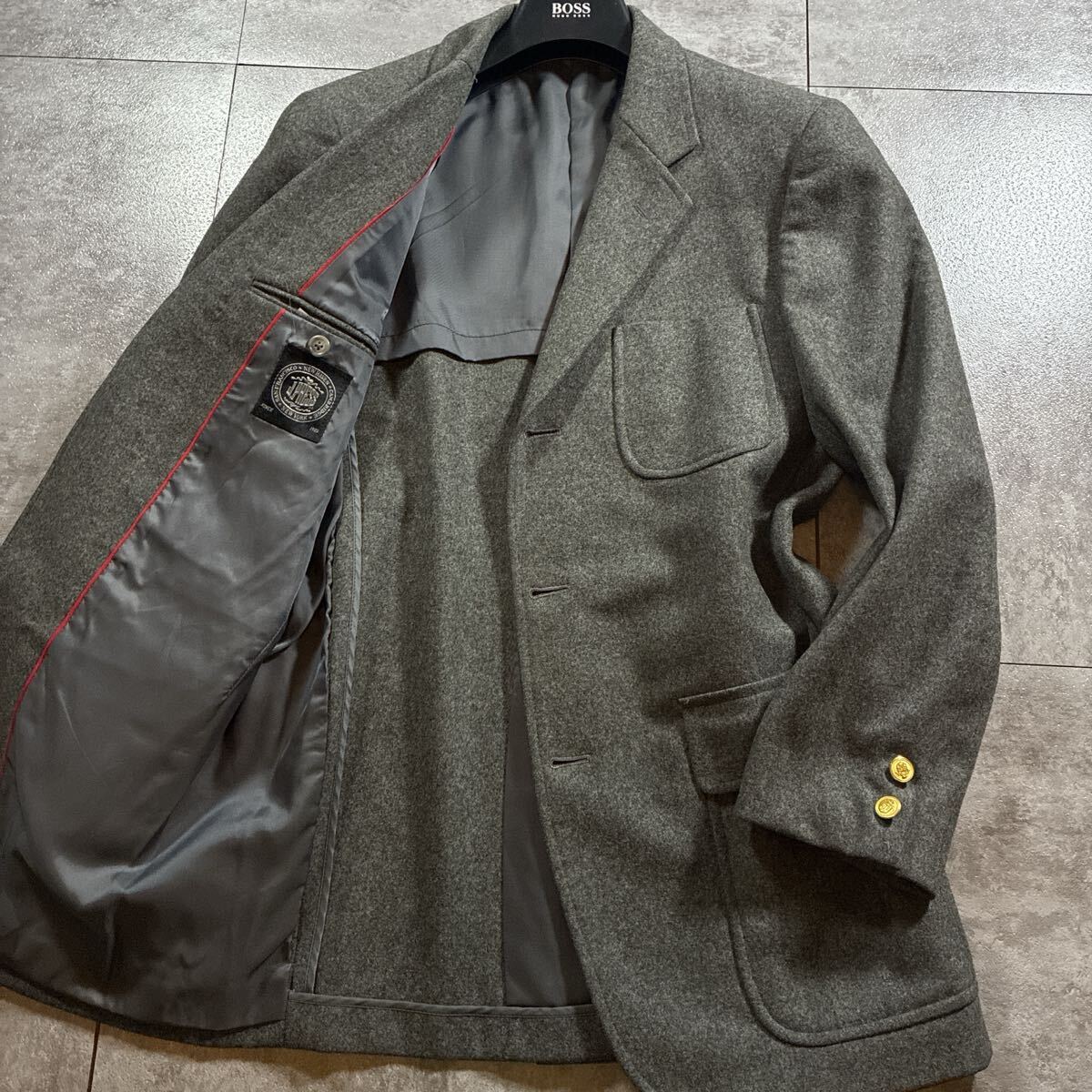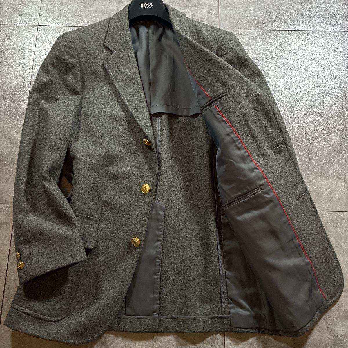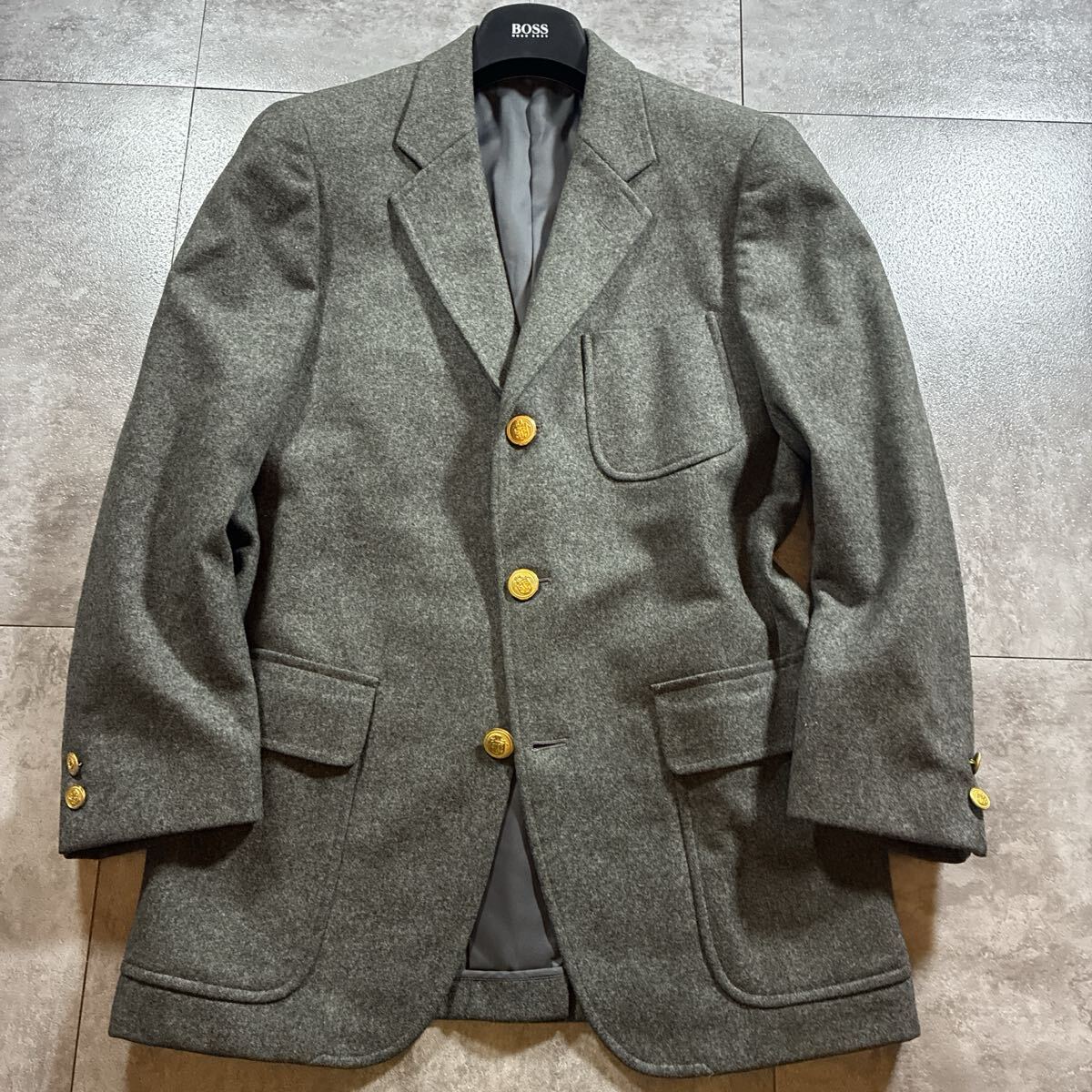 J.PRESS(ジェイプレス)のグレーのウールジャケットです。3つボタンのテーラードジャケットで、ゴールドボタンがアクセントになり、トラディショナルなアメトラスタイルの一着です。