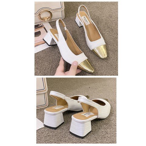 ・メタリックなつま先がお洒落でモダンな切り替えデザインのサンダル。