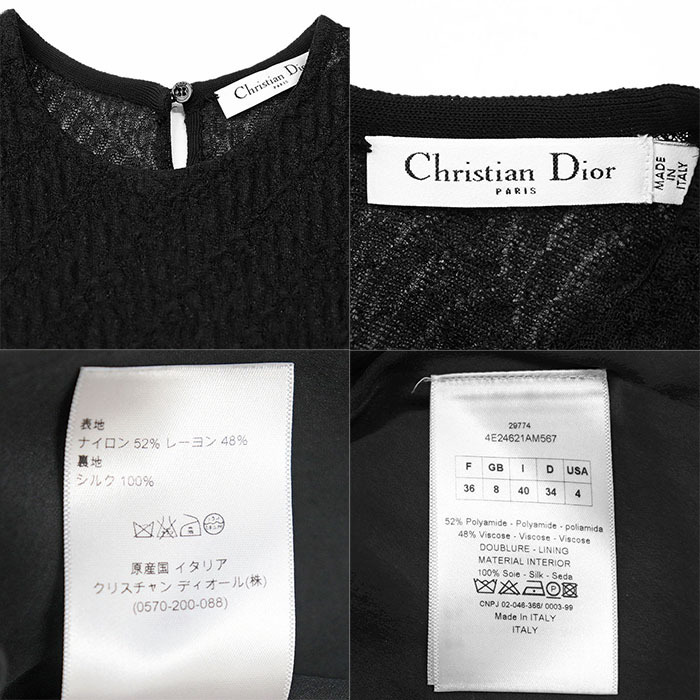 シリーズChristian Dior クリスチャン ディオール ワンピース ノースリーブ ロゴ ボタン 切替 フレア 膝下丈 ドレス レディース 36 黒 伊製