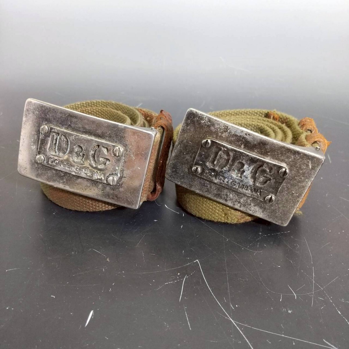 S170 D&G ドルチェ&ガッバーナ ベルト 迷彩 カモフラ 2点セット バックル シルバー カモフラージュ グリーン×ブラウン ドルガバ 現状