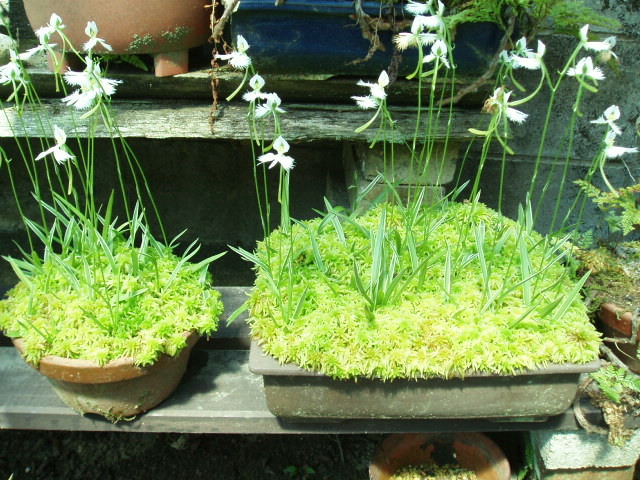 写真7枚目(最後)はこの種の水苔単用でサギソウ栽培した時のサギソウと水苔の成長具合の一例です。