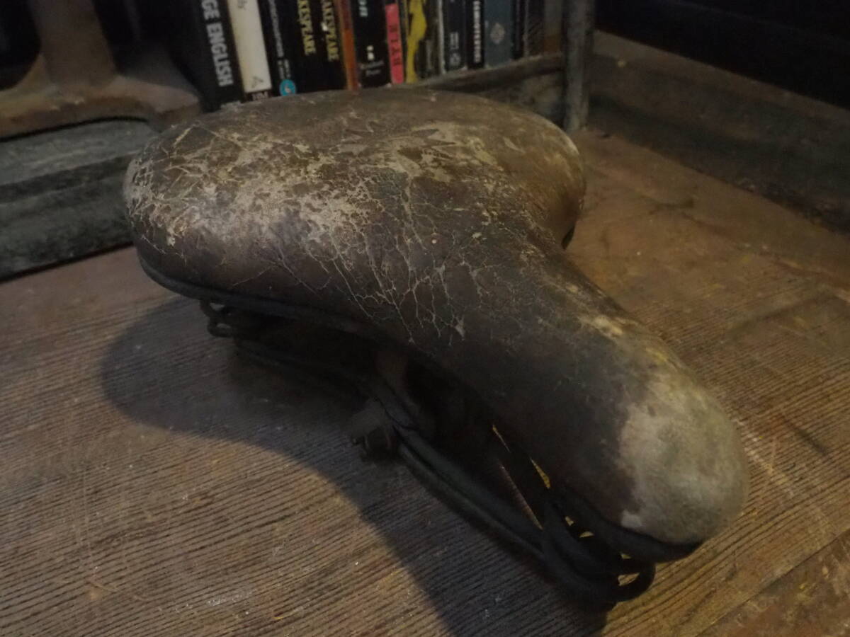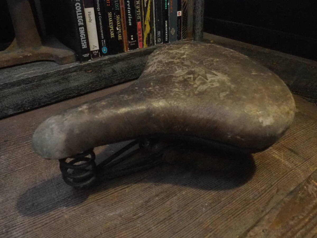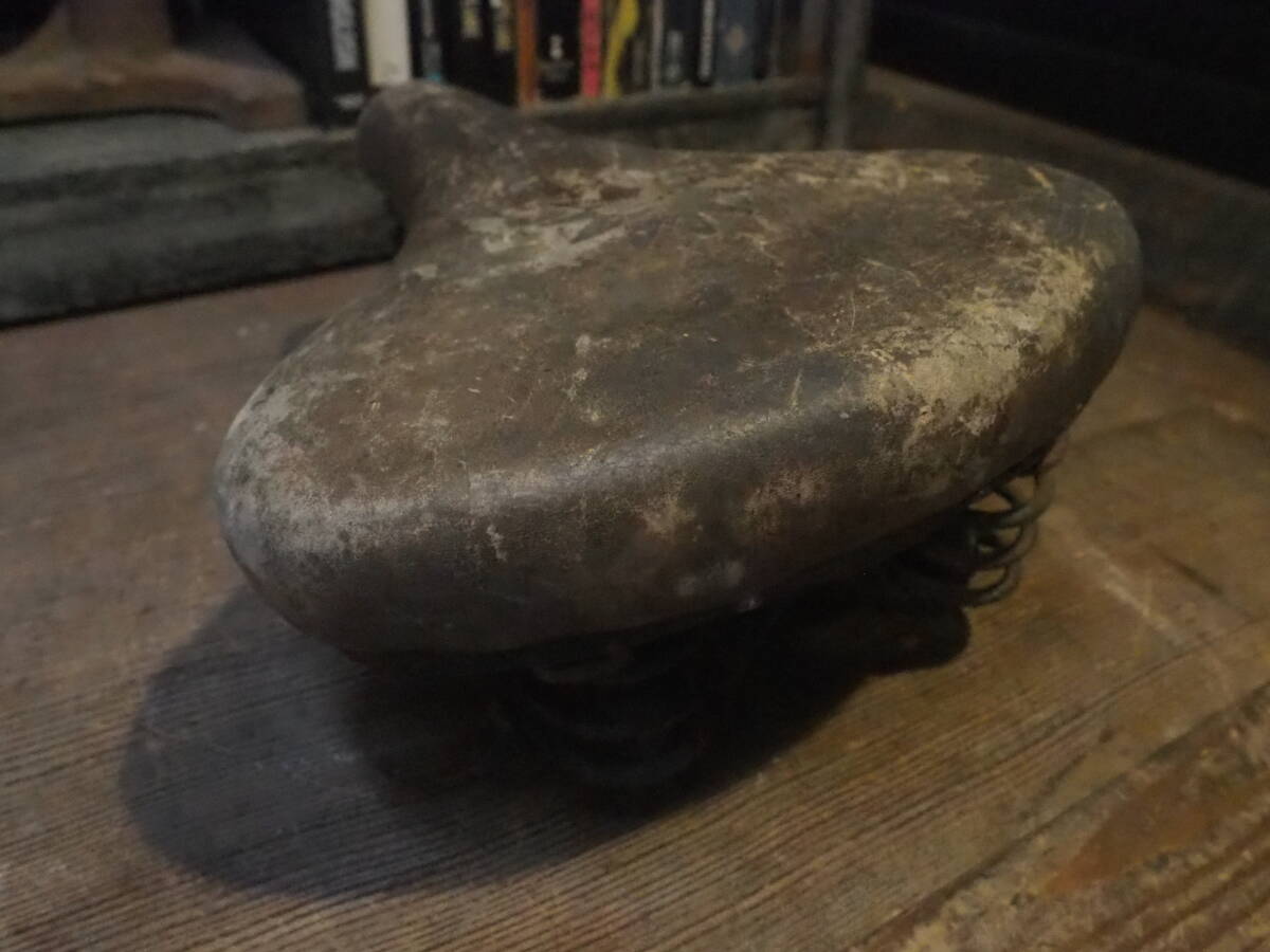 古道具の市で見つけた昭和レトロな自転車のサドルです。