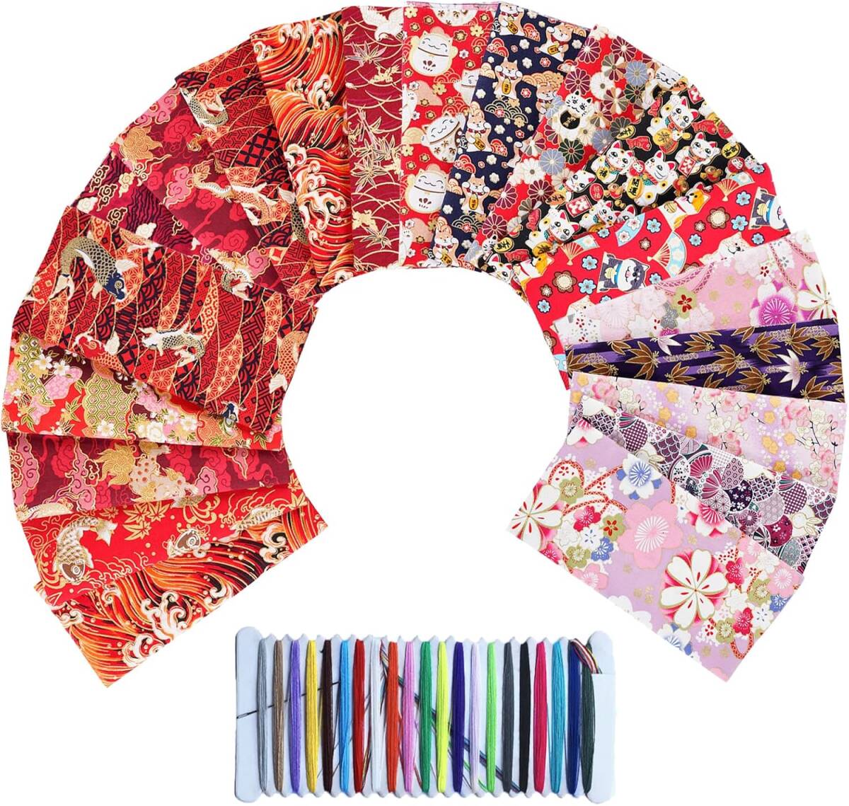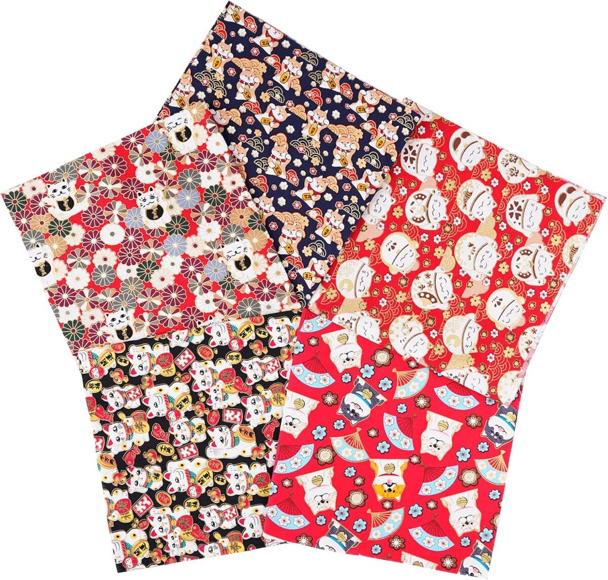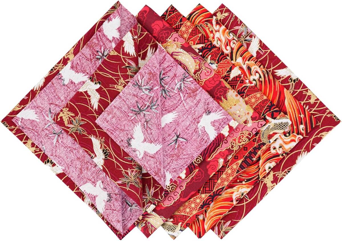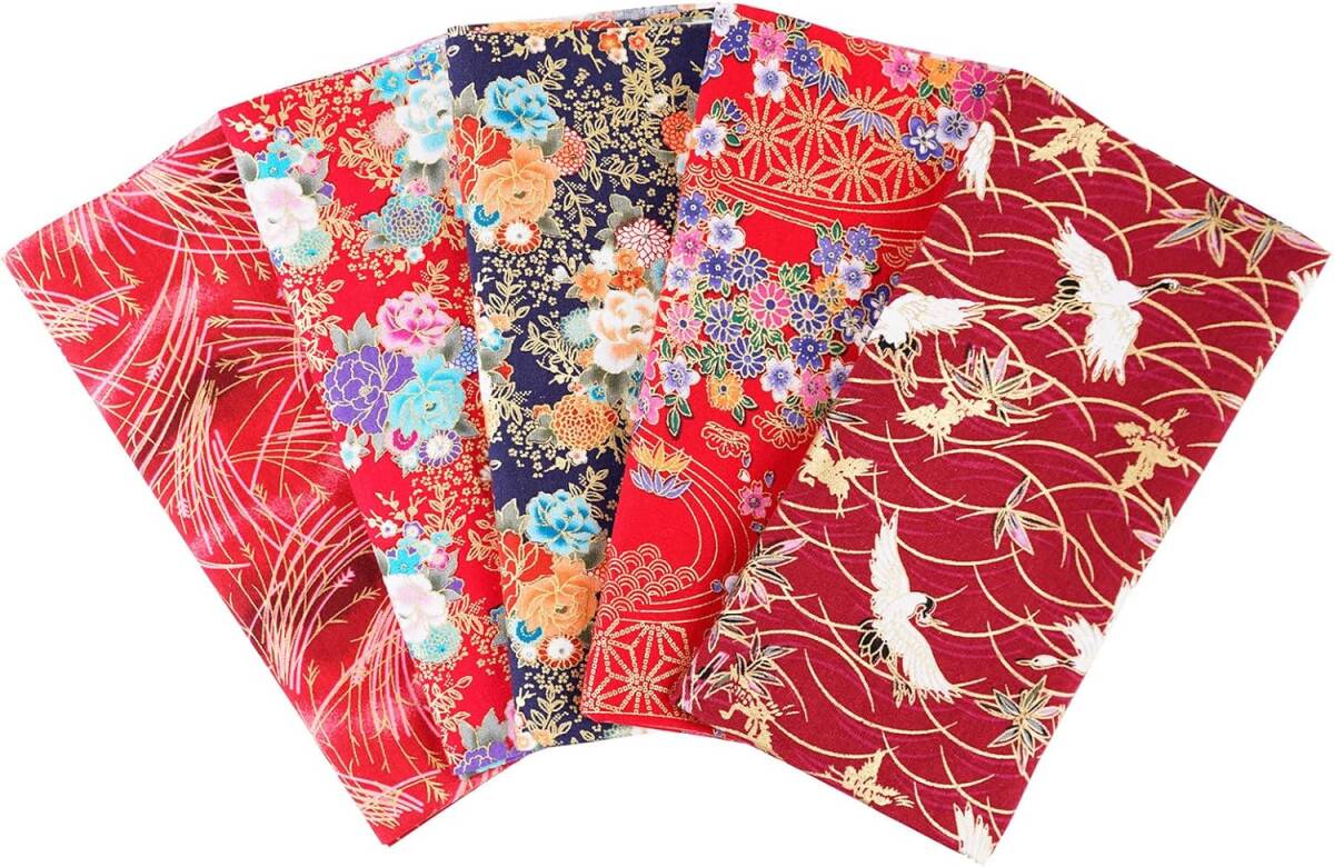 赤系色 布 生地 和風柄 パッチワーク布 手芸 20枚セット 25 x 20 cm ハギレ布 かわいい 布地 綿 カットクロス 金箔押し 和調 花柄