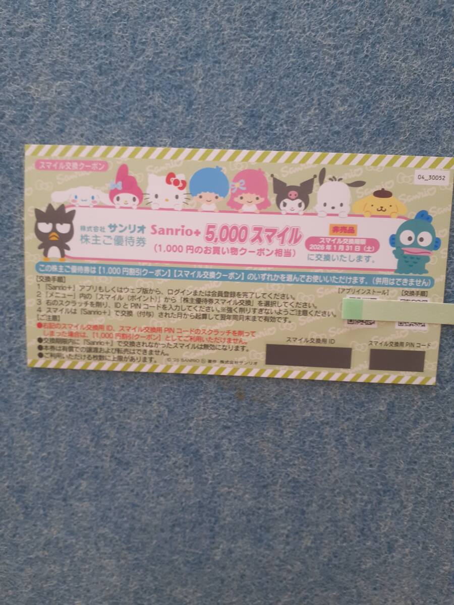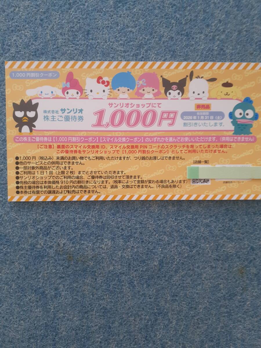 2.サンリオショップ1,000円または5,000スマイルポイント利用劵