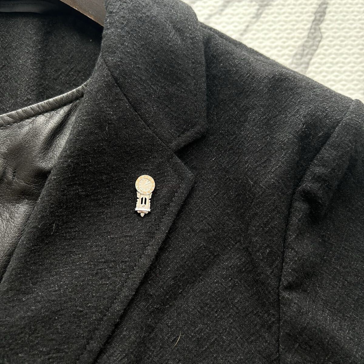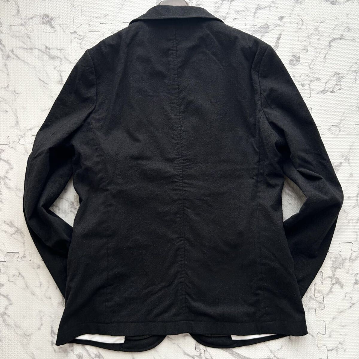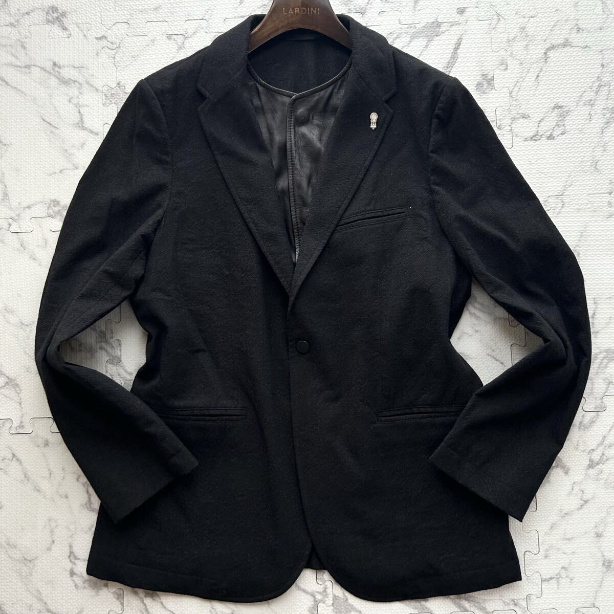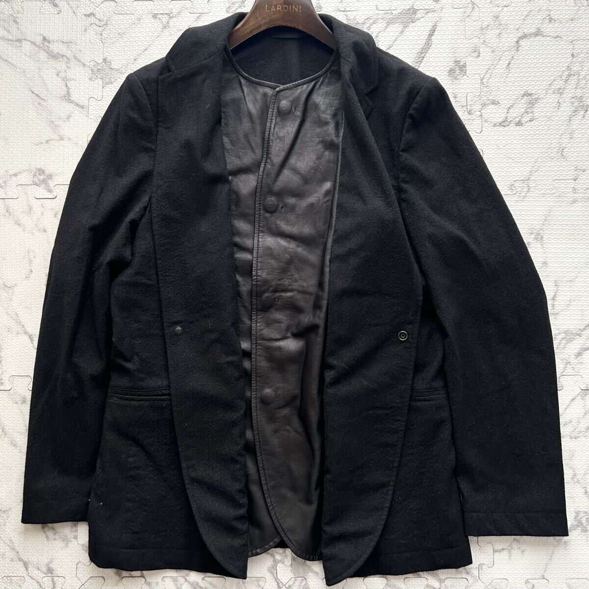 美品/XL相当●EMPORIO ARMANI エンポリオ アルマーニ JOHNNY LINE ラムレザー切替 羊革 テーラードジャケット ラペルピン付 ブラック 黒 50