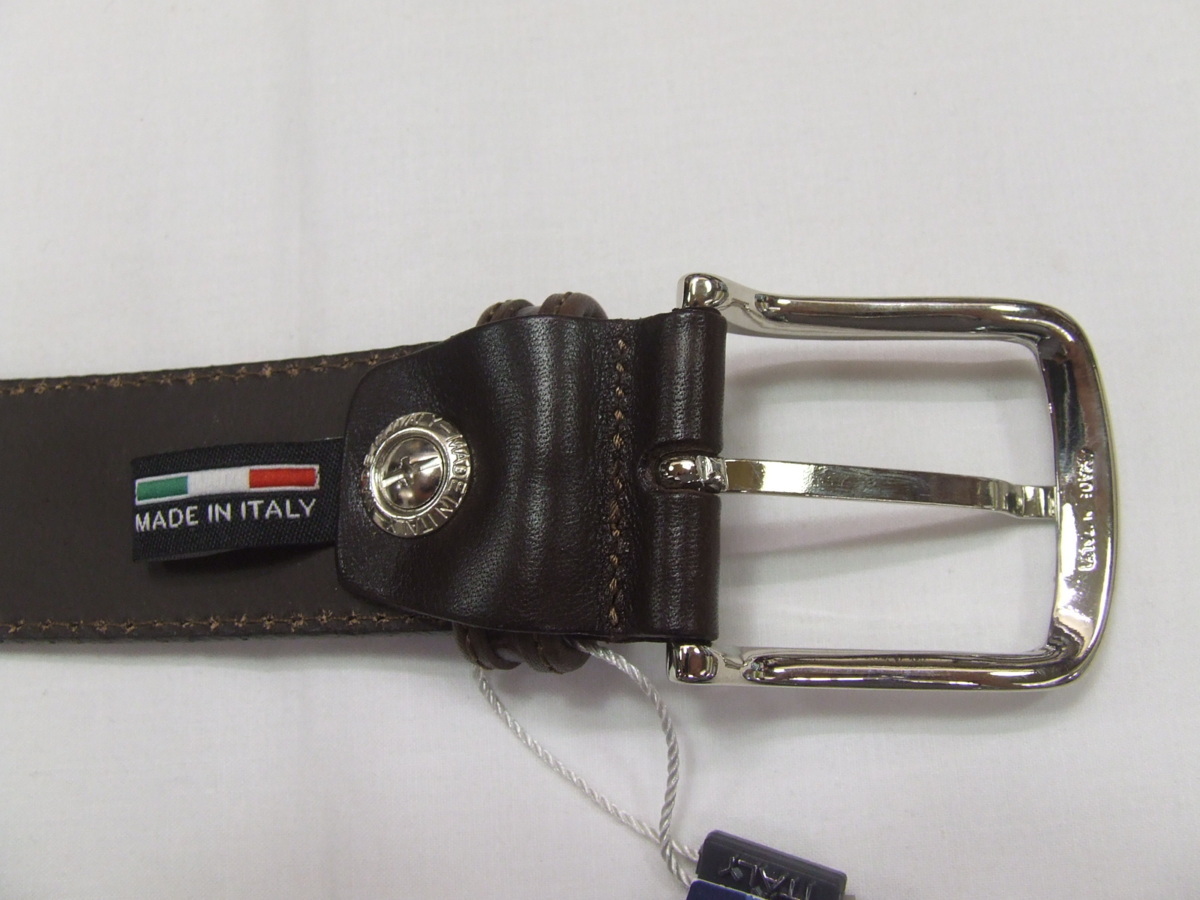 本革を知るならイタリアンレザーから始めよう! 革の本場イタリアで生まれるレザーは「イタリアンレザー」と呼ばれ、世界中で多くの方に愛されている本革です。特に初めて革製品を持つのであれば、種類も豊富で選びやすいイタリアンレザーがおすすめです。イタリアンレザーには、3つの大きな特徴があります。 オイルレザー イタリアで作られるほとんどの革は、オイルをたっぷりと染み込ませたオイルレザーとなっています。オイルレザーは柔らかくてしっとりとした手触りと、深みのある色つやが特徴です。新しい革は明るい色味で光沢もあり、女性にも人気があります。 牛革を使用 イタリアンレザーは、牛革を使用していることがほとんどです。牛革は他の革(羊や馬、クロコダイルやヘビなど)に比べると、比較的手に入りやすいのが特徴。その分価格も抑えられており、初めてでも選びやすいレザーです。 初心者向けとはいえ、皮の種類や部位、加工法などはさまざま。知れば知るほど奥が深い、大人な魅力がたくさんあります。 バケッタ製法 イタリアで作られる高級レザーの多くは、この「バケッタ製法」と呼ばれる製法で作られています。バケッタ製法は、イタリアの伝統的な製法です。膨大な時間とコストをかけて、じっくりと特殊なオイルを革に染み込ませていく製法です。 しっとり滑らかな手触りと、使うほどに深く変化する色つや。乾燥しにくく、メンテナンスをほとんど必要としない強さが特徴です。「ミネルバボックス」や「マットーネ」は、バケッタ製法で作られる代表的な高級イタリアンレザーです。 状態:新品タグ付き サイズ:ウエストサイズ95cm~105㎝ 長さは切って簡単に調節できます。 ベルト幅:34MM 素材:牛皮 カラー:濃いブラウン色 希望小売価:9,800円(税抜き) 製造:イタリア ※皮革製品につき多少のスレ・キズ等はご了承願います |