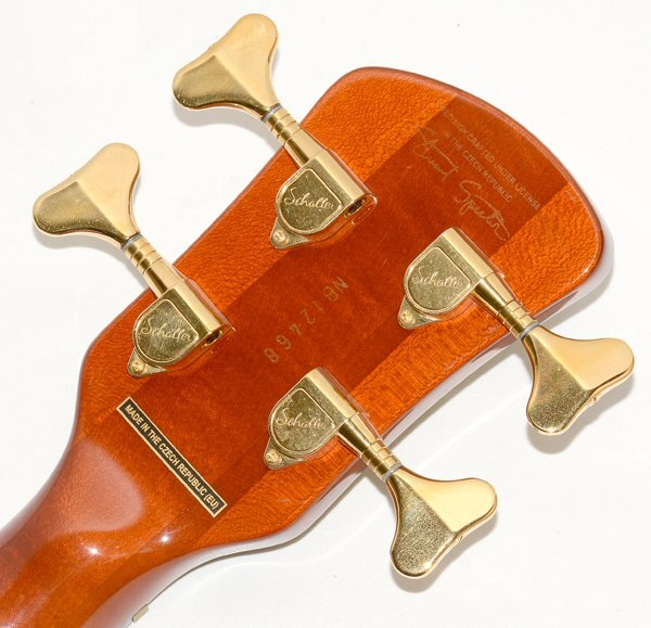 ・ボディ正面、側面、背面にスレ、キズ、多少の打痕が見られます。 ・ボディ底面にスレ、キズが見られます。 ・ネックに多少のスレ、小キズが見られます。 ・ヘッドに多少のスレ・キズが見られます。 ・指板に多少のスレ、小キズが見られます。 ・ペグ、ジャック、ブリッジ等金属部分に多少のスレ、小キズ、くすみが見られます。 ・ピックアップに多少のスレ、小キズ、印字に薄れが見られます。 ・ノブに多少のスレ、小キズが見られます。 ・ネジに多少のスレ、キズが見られます。 ・バックプレートに多少のスレ、キズが見られます。 ・ケースにスレ、キズ、汚れ、ほつれ、破れ等が見られ、ファスナーの持ち手が一部欠品しています。 全体的にキズ、スレ、多少の打痕等が見られますが、 上記の点以外に特に目立ったキズ、ダメージは見られない状態です。 ネックは僅かに順反りの傾向です。 (現在の弦高は12Fで、1弦側:約1.0mm、4弦側:約1.5mm) 重量:約4.3kg、ナット幅:約41mm、スケール:約864mm |