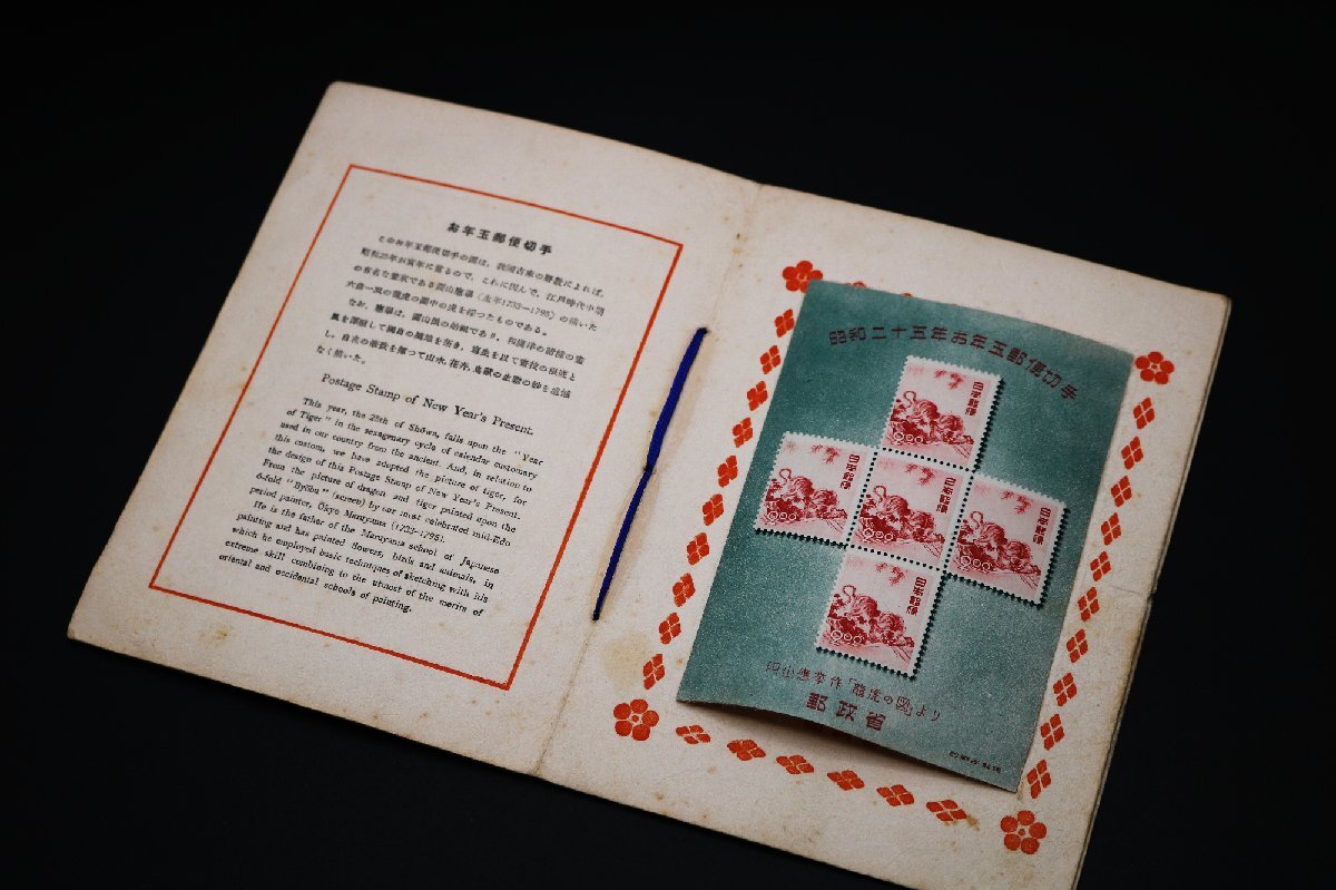プレミア切手 未使用 お年玉付き郵便はがき 発売記念 円山応挙「龍虎の図」 昭和25年用 S/S小型シート◆おたからや【D-C03142】