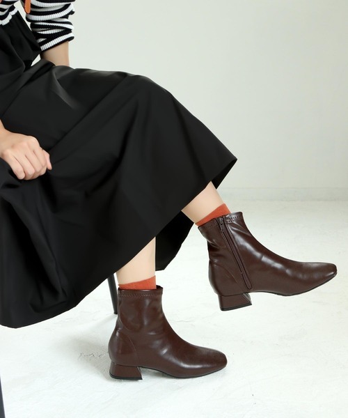 参考商品名:ローヒールのストレッチショートブーツ