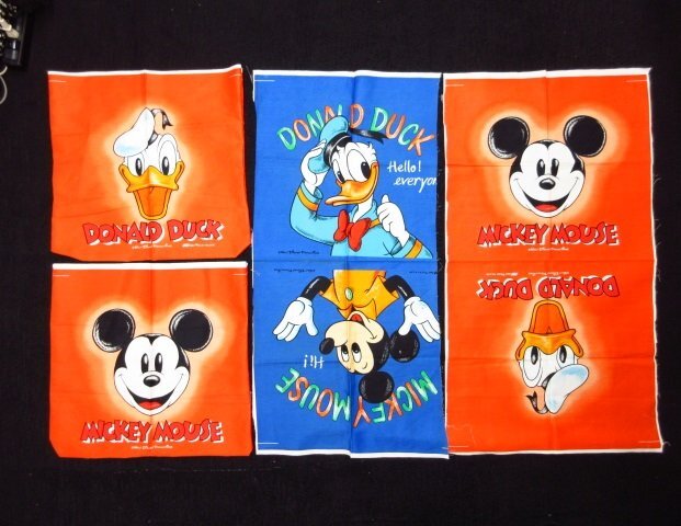 y4818 昭和レトロ art weld co. ltd ディズニー ハンドメイドクッションカバー2点+生地2点 ミッキー ドナルド 布 リメイク素材 DISNEY