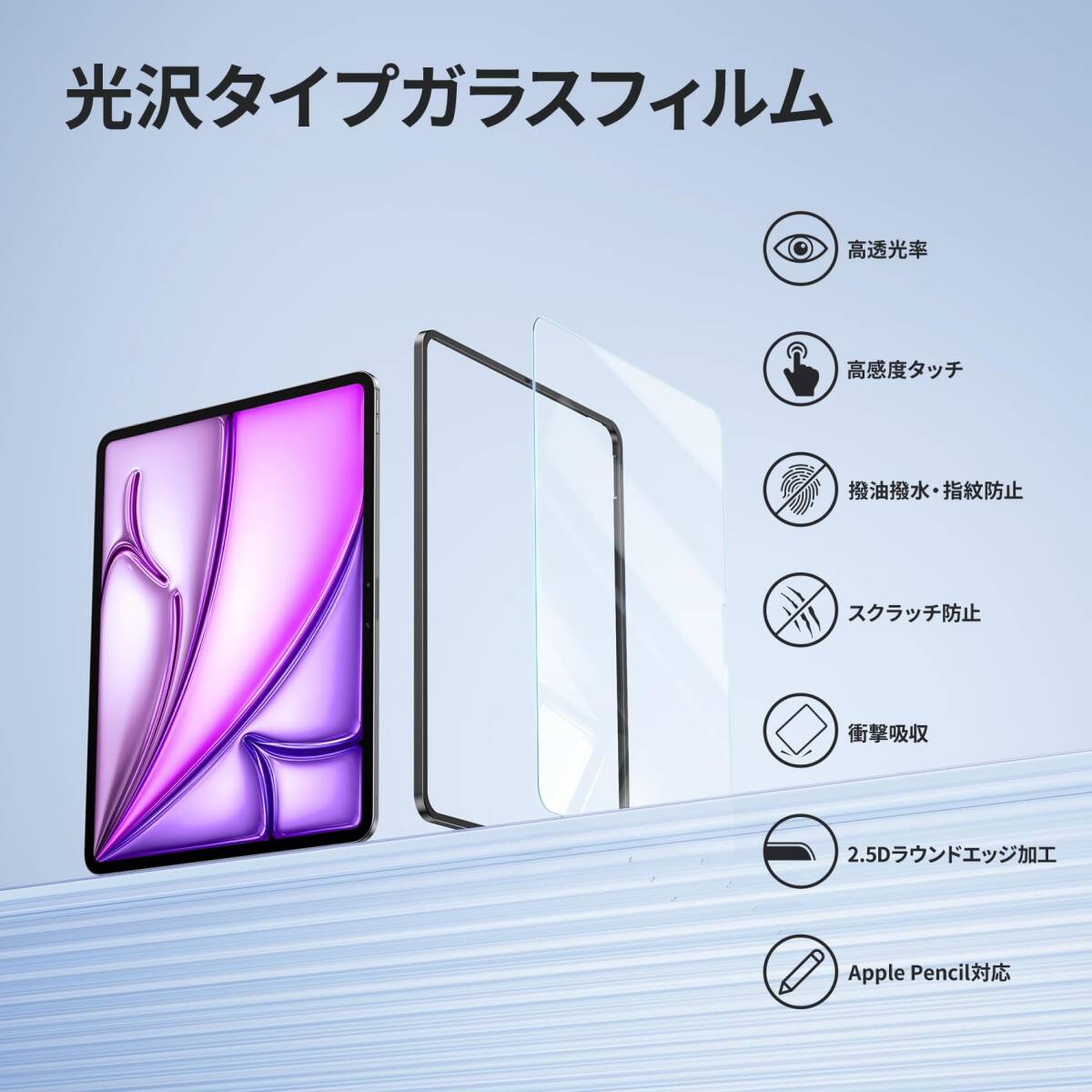 NIMASO ガラスフィルム iPad Air 13インチ M3 2025用/M2 2024用 保護 フイルム 強化 ガラス 指紋防止 ガイド枠付き 衝撃吸収 アイパッド エアー13 NTB24C1159