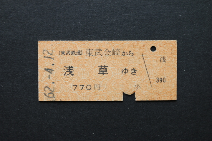 東武鉄道 乗車券 東武金崎から 浅草ゆき 770円