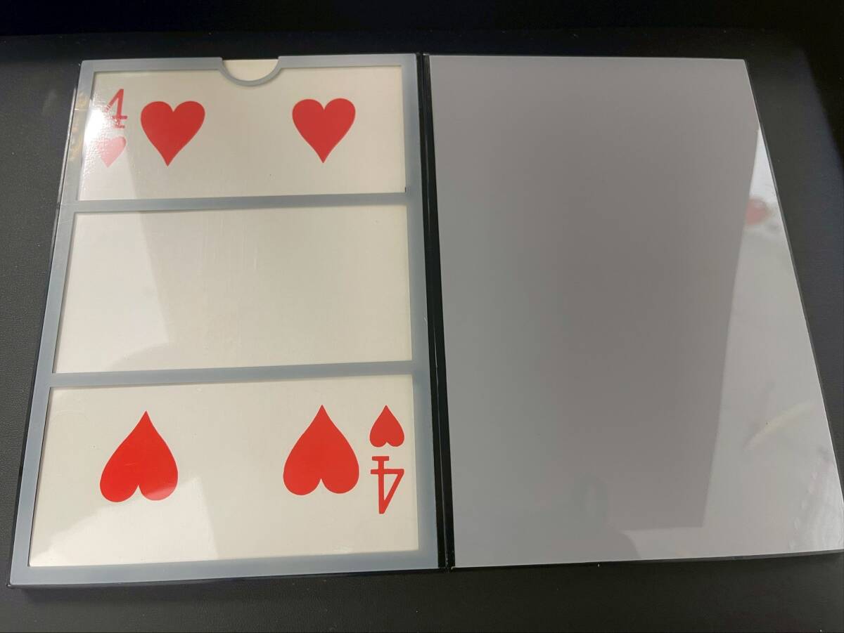 ケースを開くと1枚の大きなトランプ(11cm×17cm)が透明なケースに入っています。