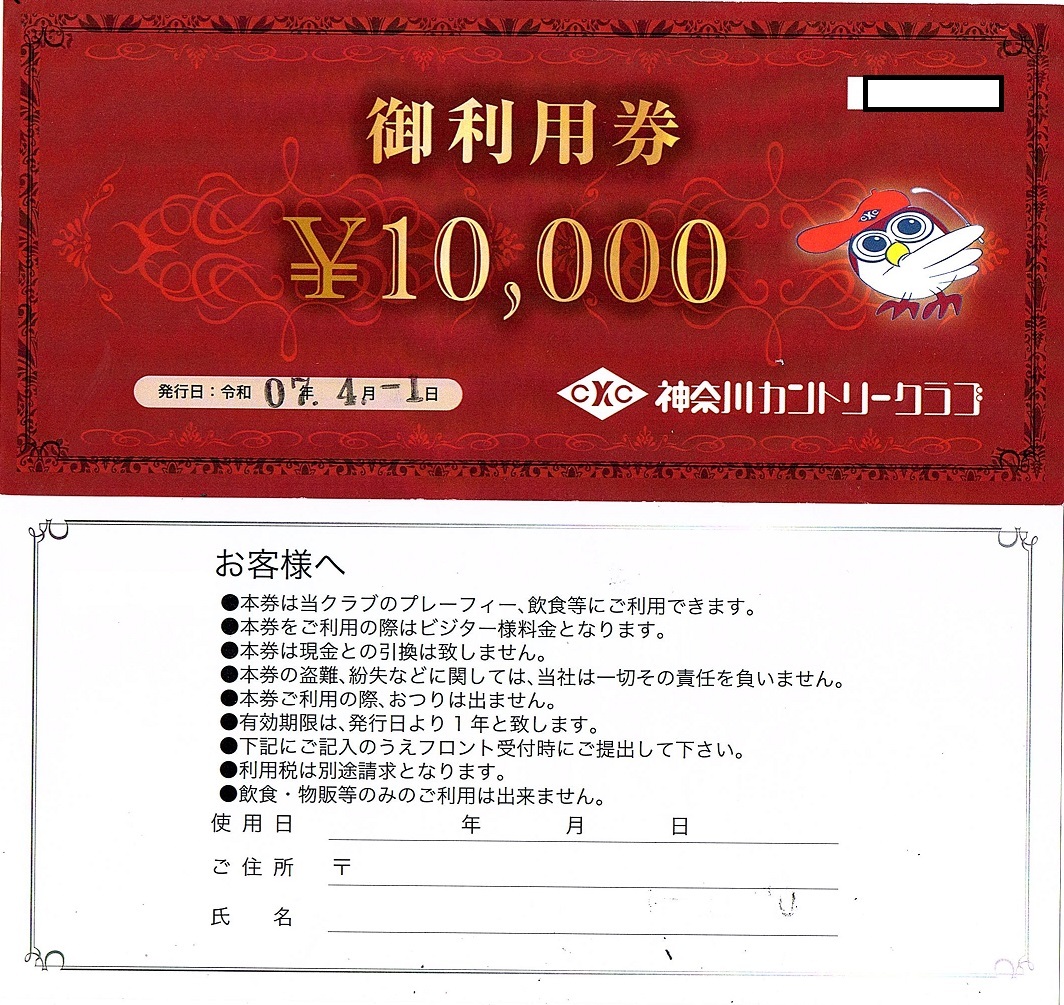 神奈川カントリークラブ ご利用券 10000円券 1枚(単位) ~2枚迄 2026年3月末迄有効