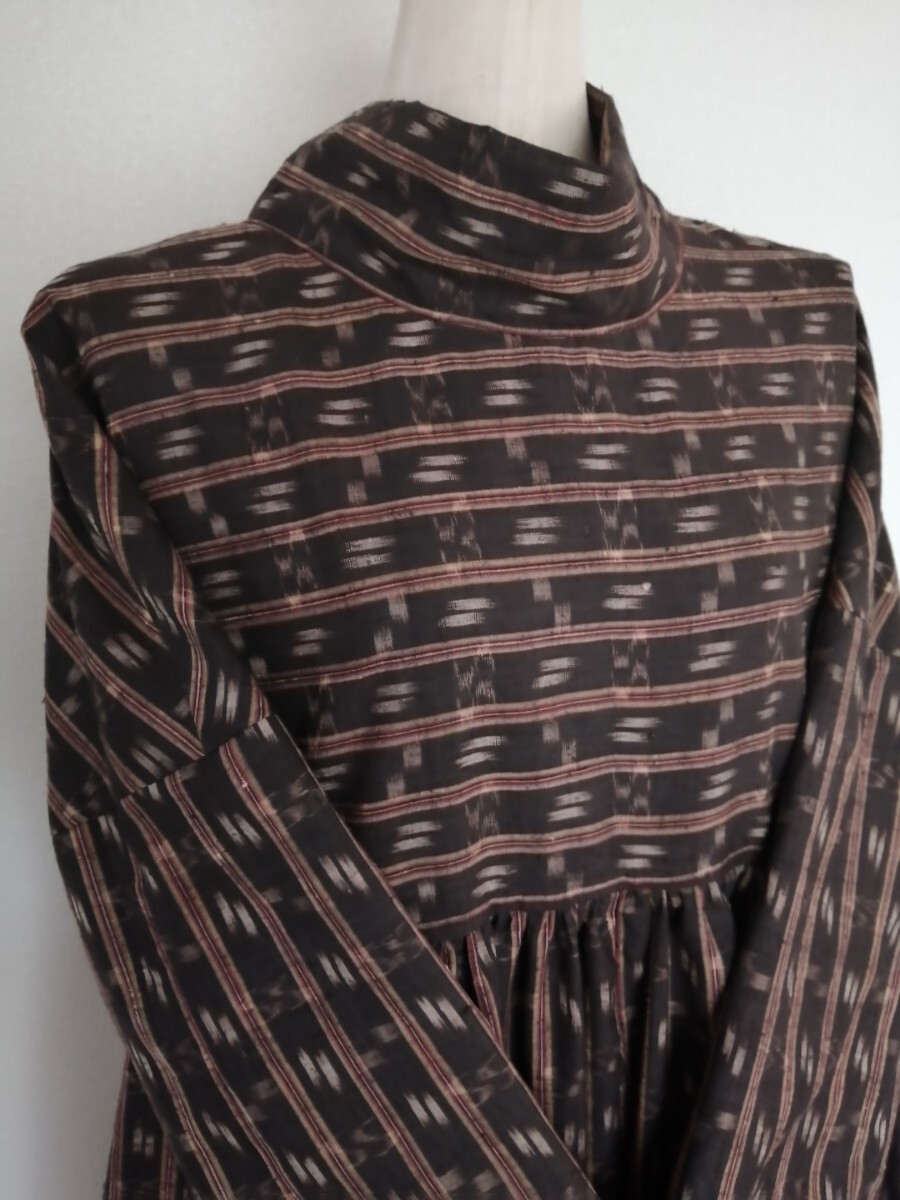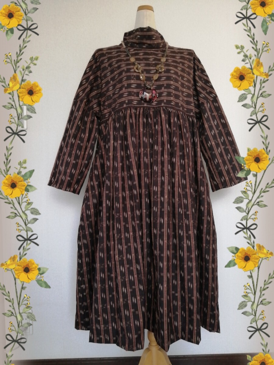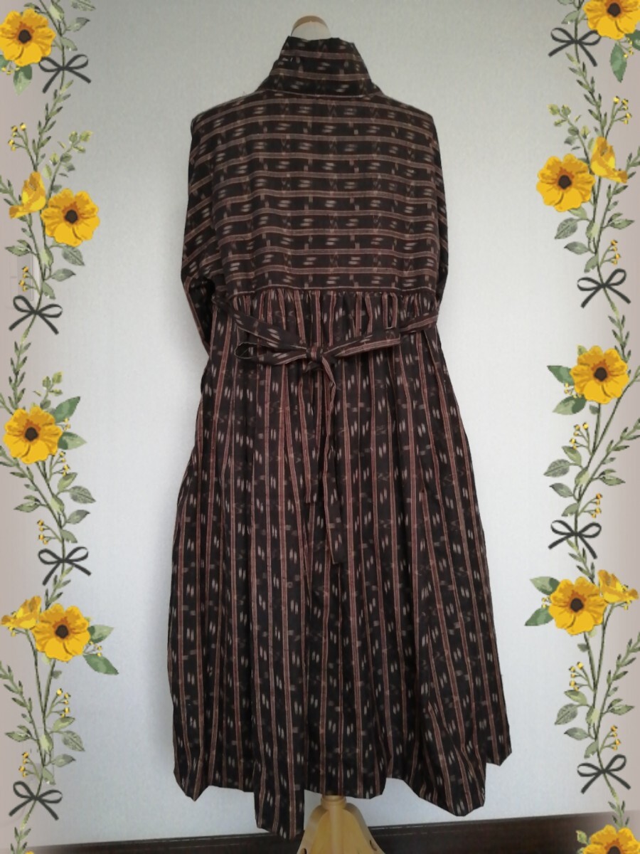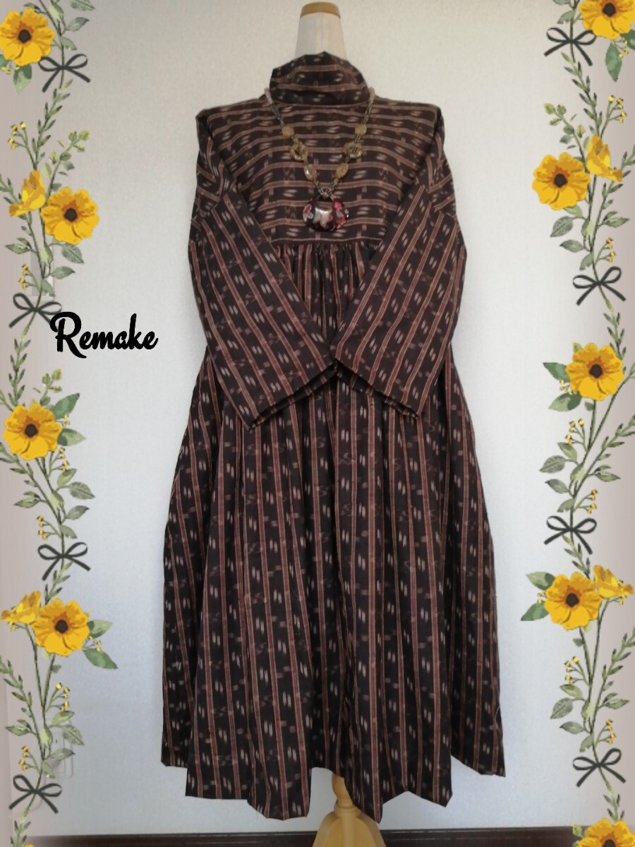 ★昔の着物をリメイクした、紬のチュニックワンピースになります。左右にポケットがあります。裏地無し、スッポリと被るタイプです。