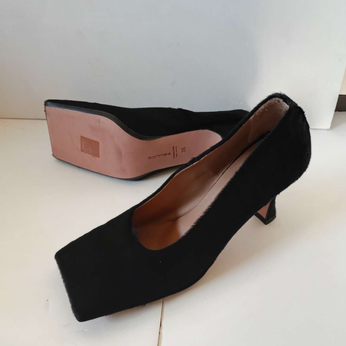 PELLICO ローヒールパンプス スクエアトゥ ハラコ イタリア製 MADE IN ITALY