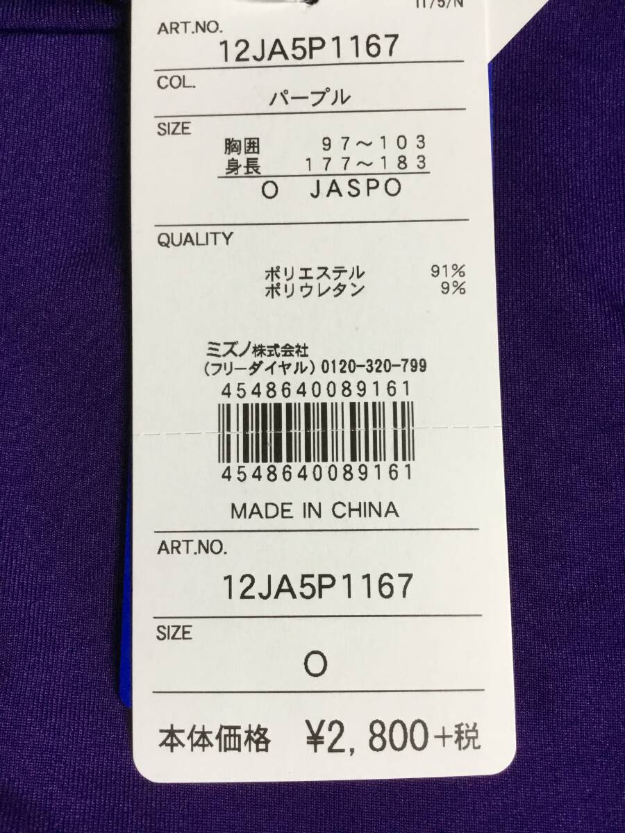 ◆ミズノ 野球用コンプレッション長袖シャツ(12JA5P1167) パープルO タグ付き未使用品 ◆ | ||||||||||