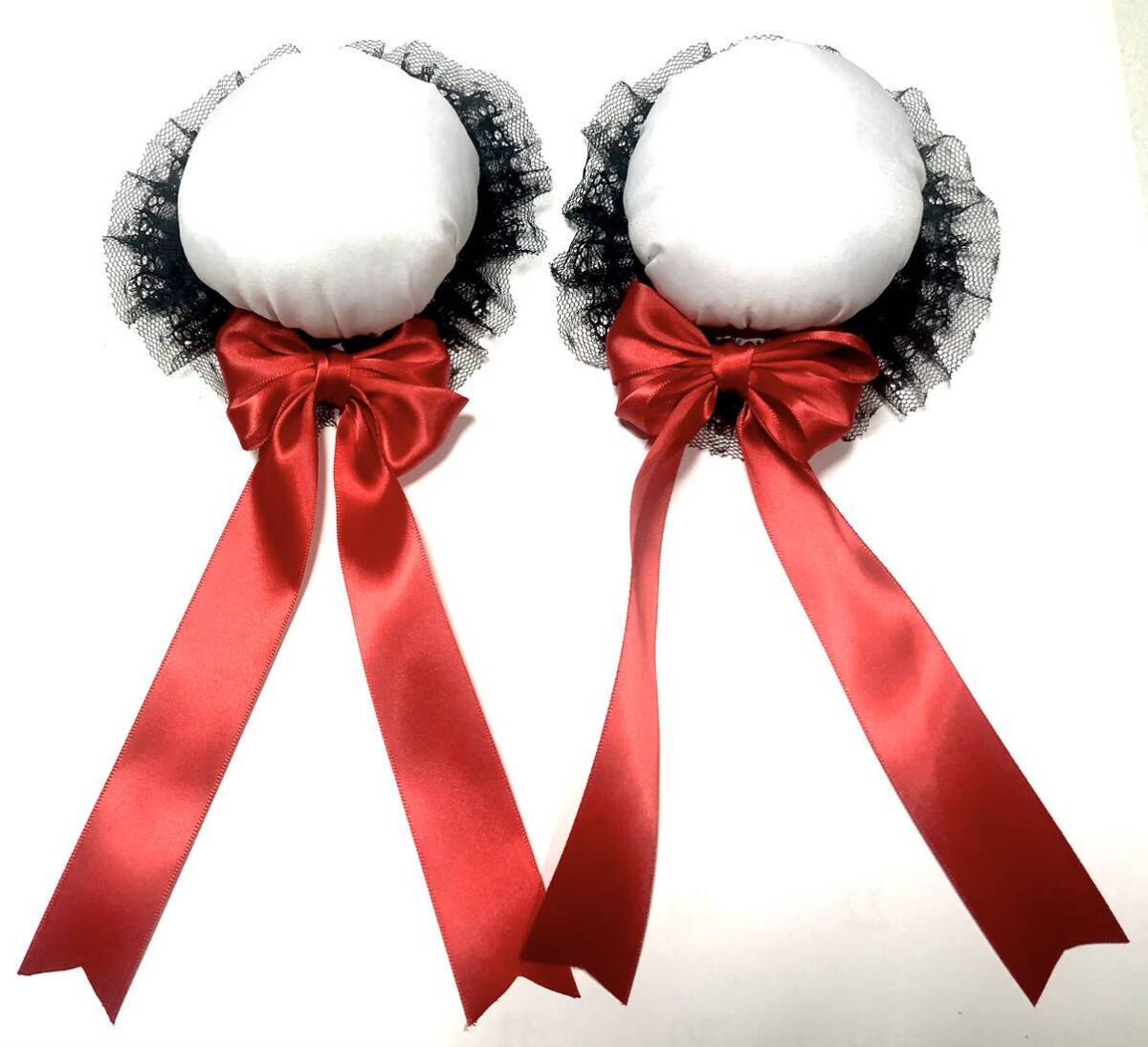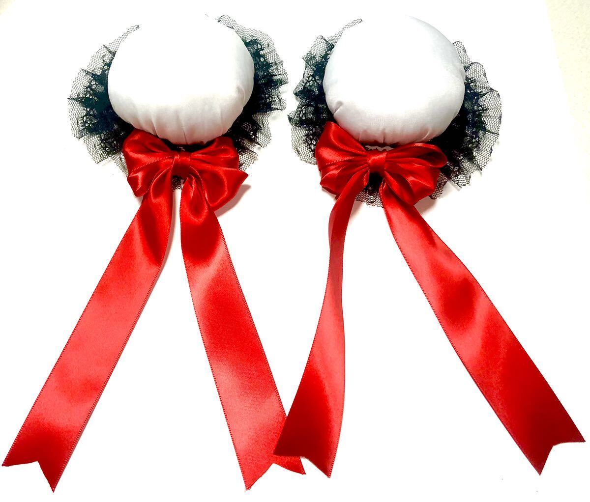 新品 クッション入り お団子アクセ 白 赤リボン 黒レース チャイナ風 コスプレ 地雷系 サブカル 華ロリ 中華ロリータ サブカル あのちゃん