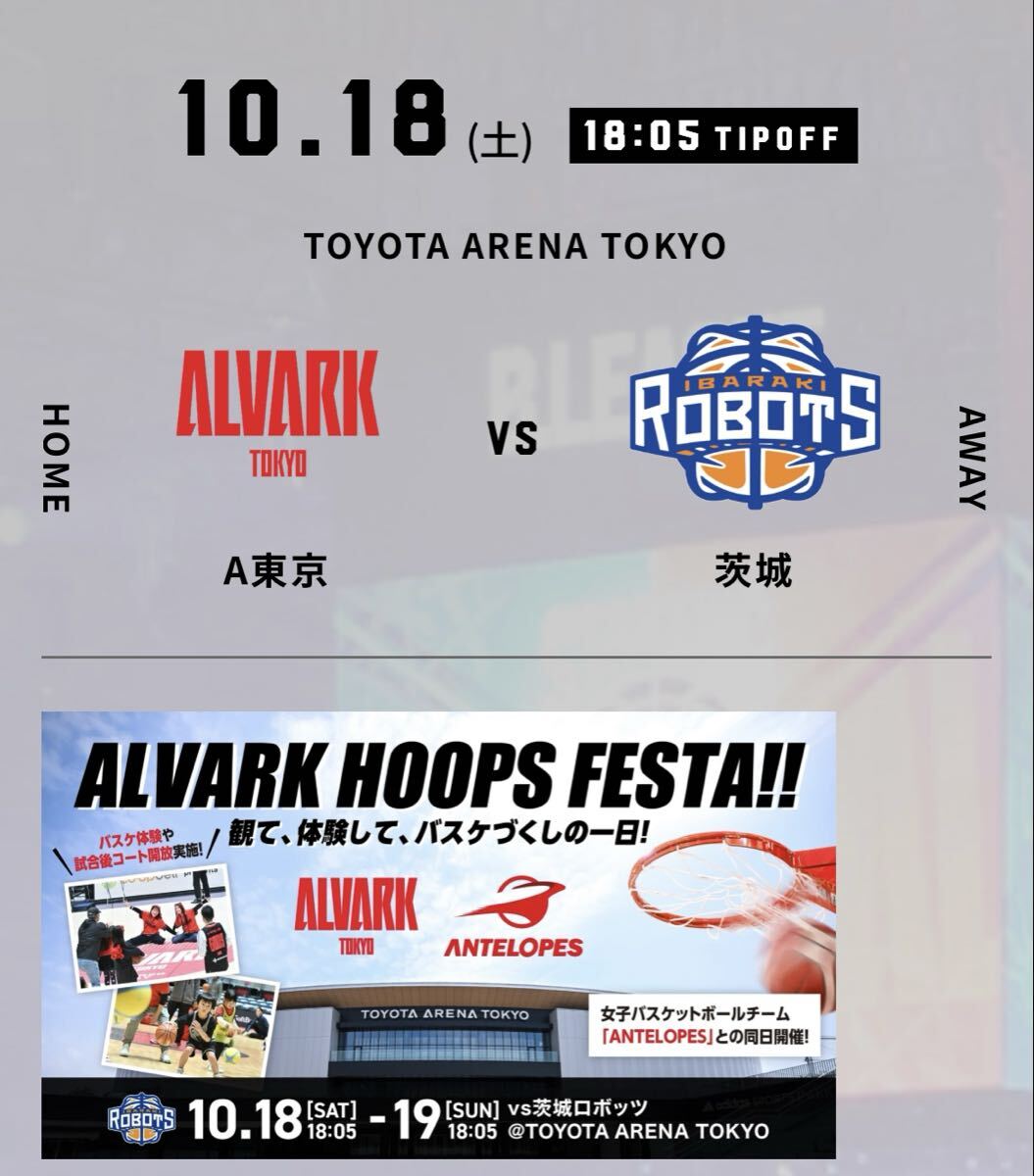 アルバルク東京vs茨城ロボッツ10/18(土)