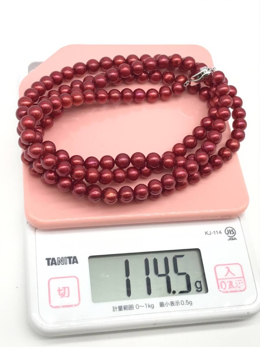 ・RP ネックレス パール 赤真珠 ジュエリーマキ ロングパール 金具 シルバー SILVER 銀 アクセサリ