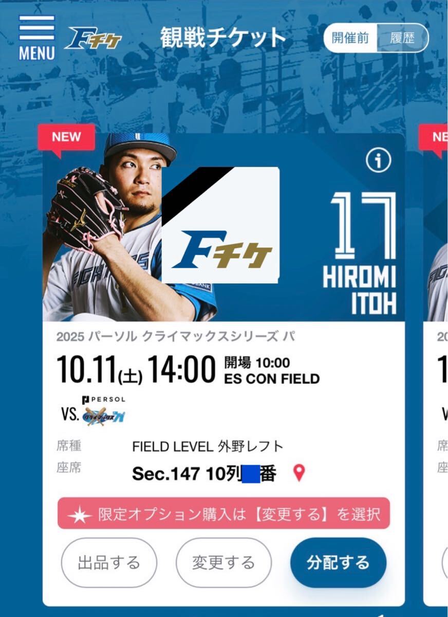 10/11 土曜日ファイターズ パーソル クライマックスシリーズ パ CS