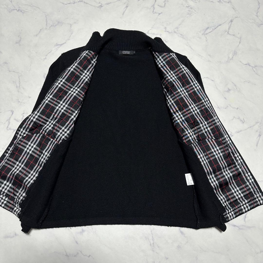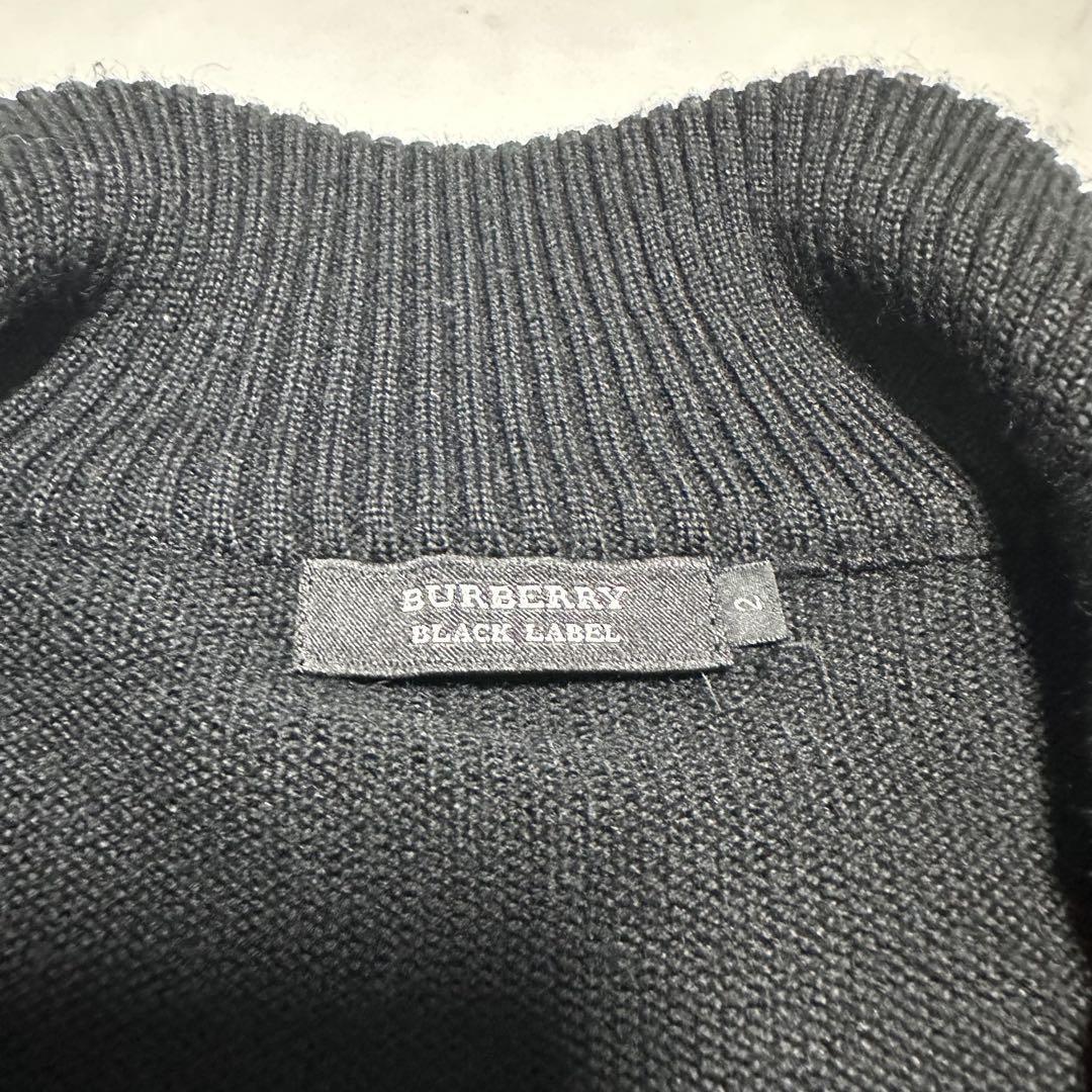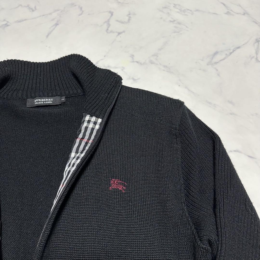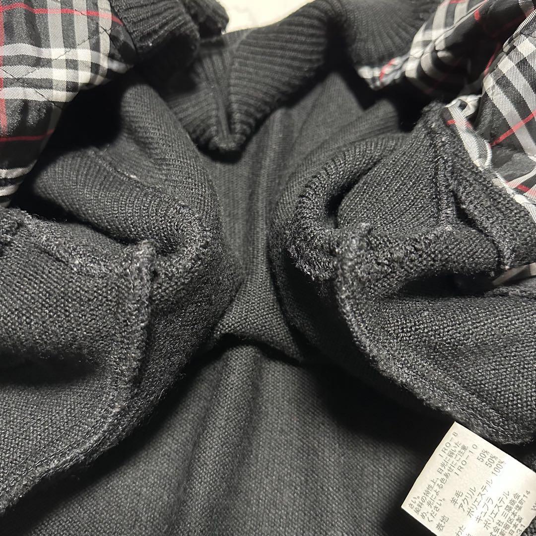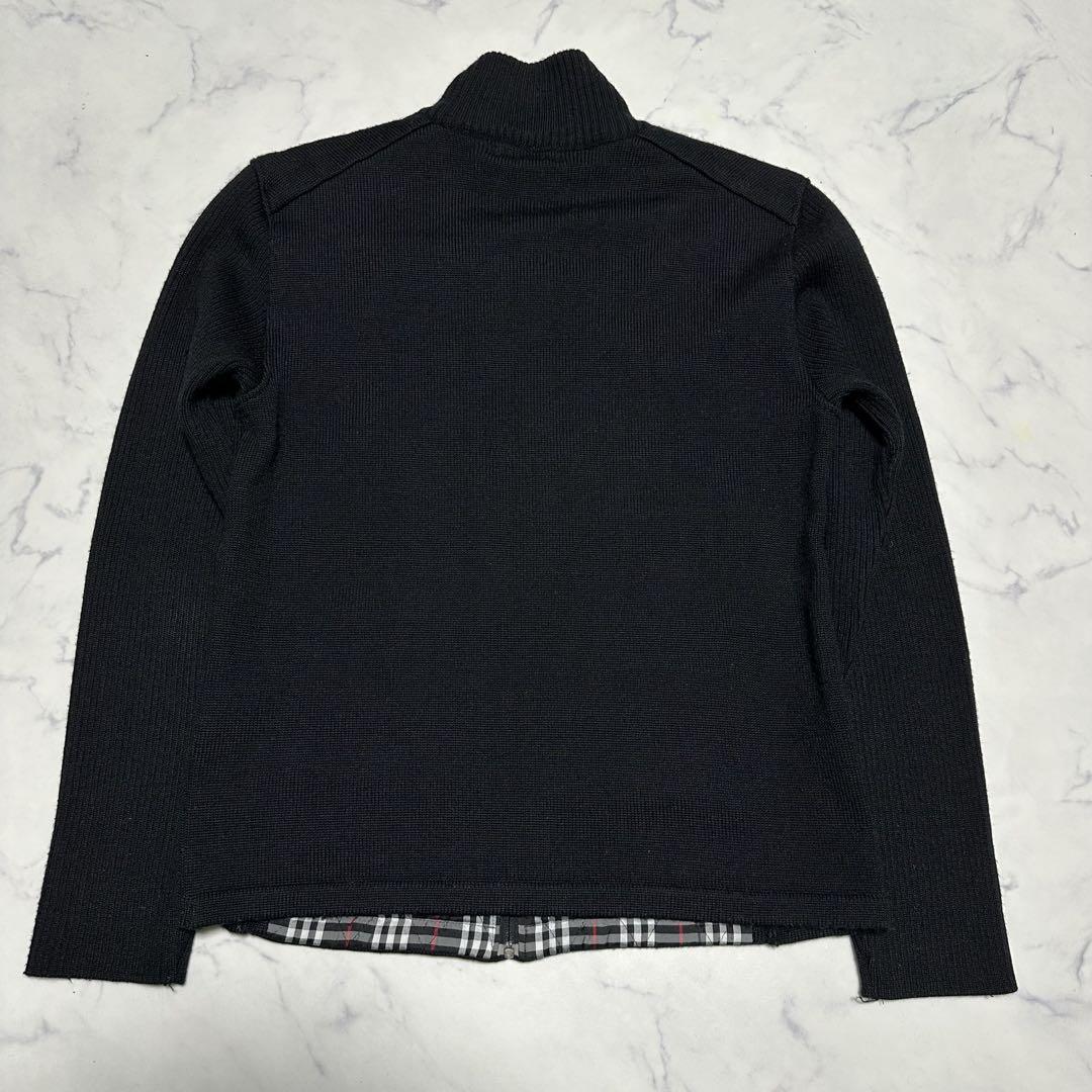 バーバリーブラックレーベル ドライバーズニット セーター ノバチェック 黒 サイズ2 ジップ ファスナー ホースロゴ
