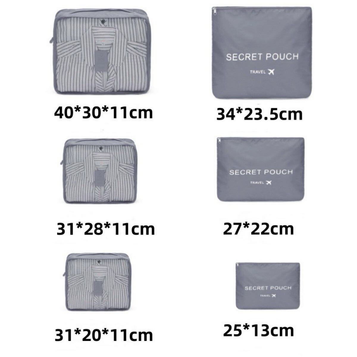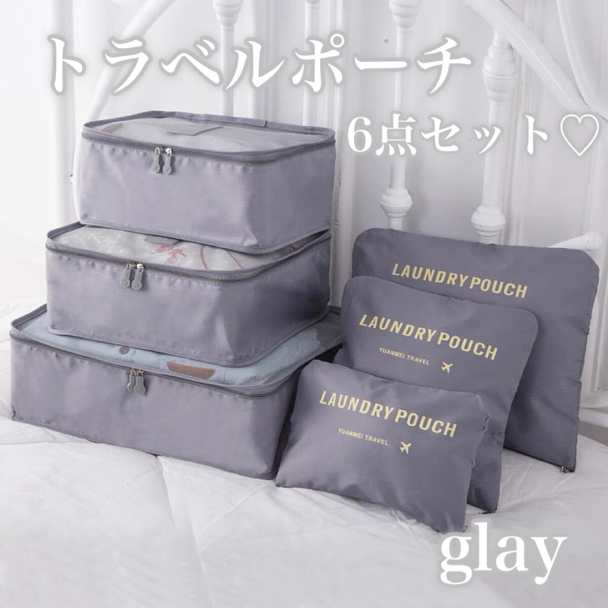 6点セットトラベルポーチグレーのページです!