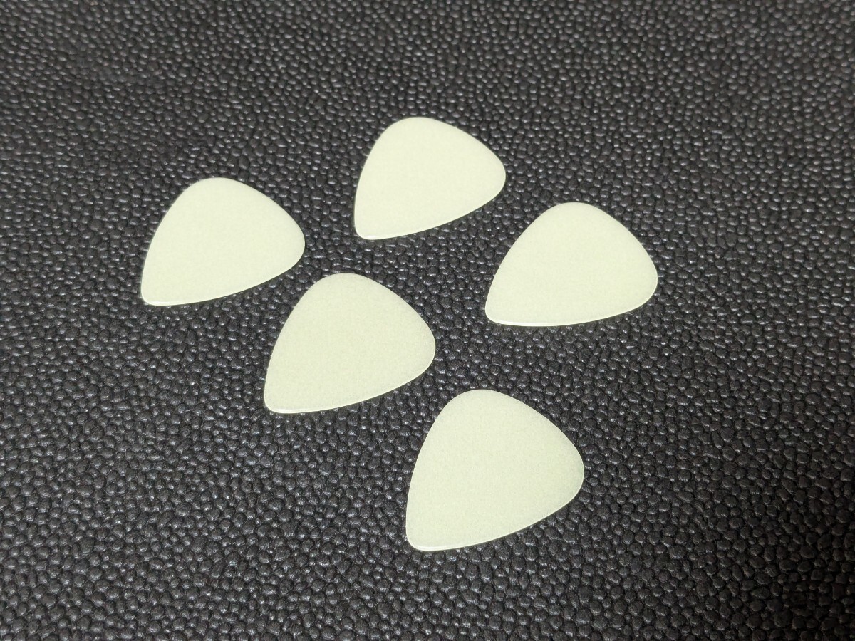 0.96mm Luminous pick 蓄光ピック 5枚 セルロイド です。
