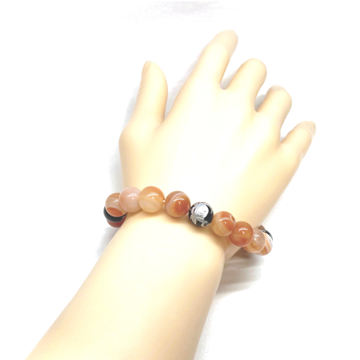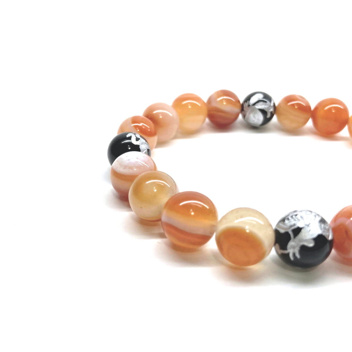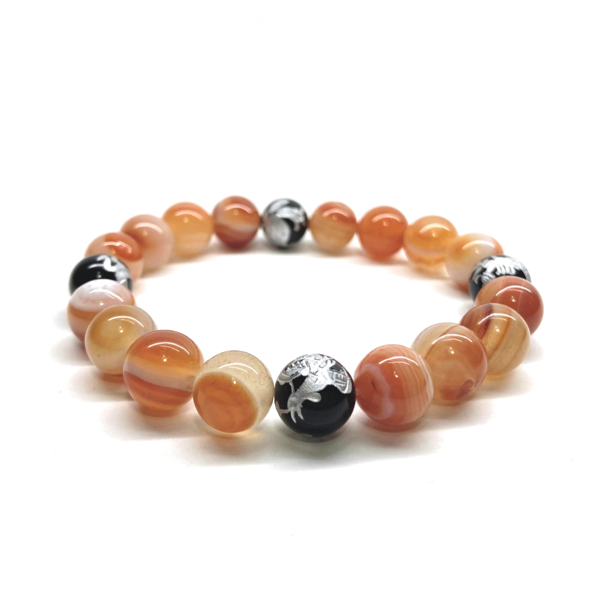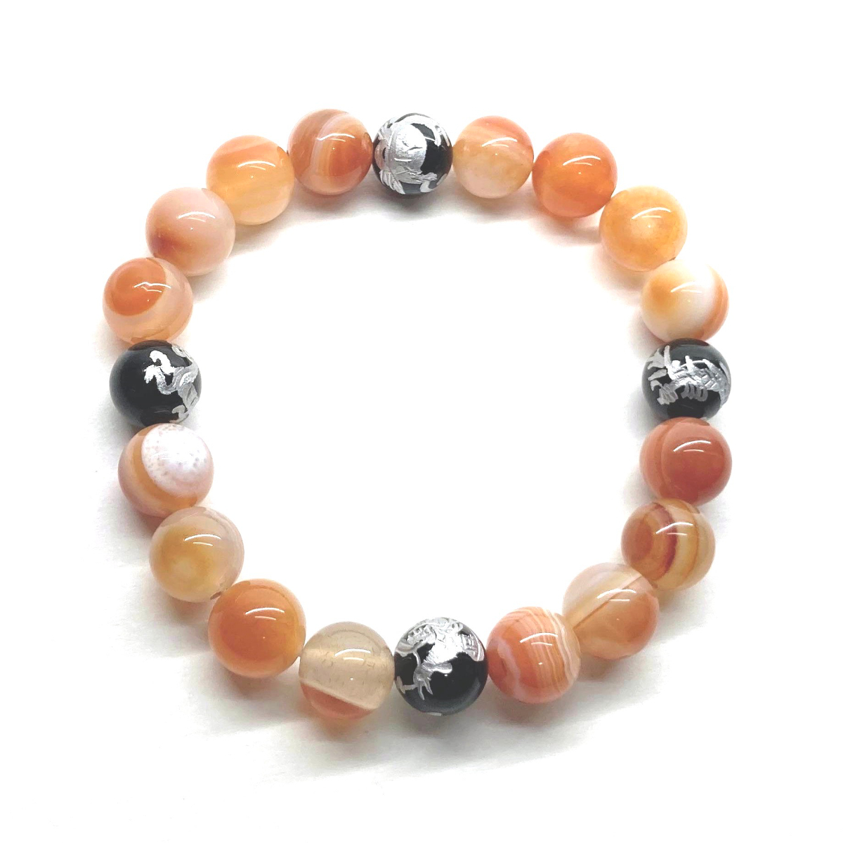 10mm 四神獣銀彫オニキス×カーネリアン・サードニクス パワーストーン ブレスレット天然石 開運 青龍 白虎 玄武 朱雀 ☆
