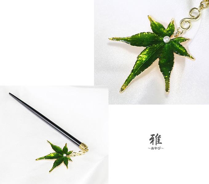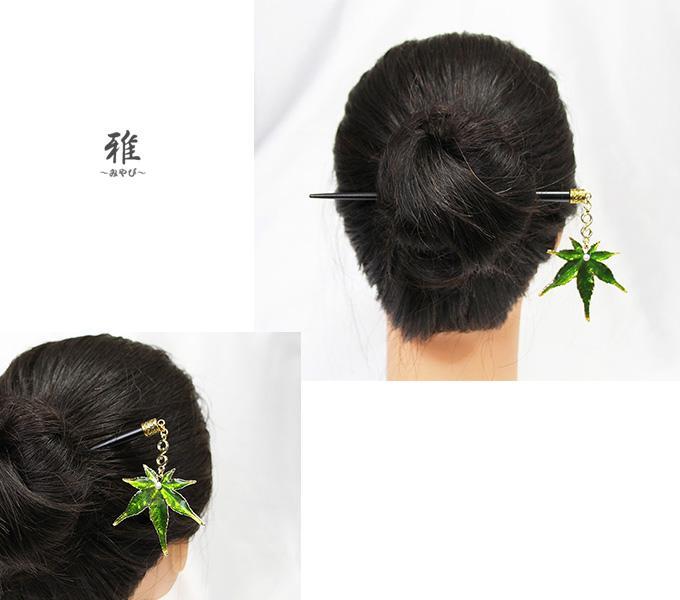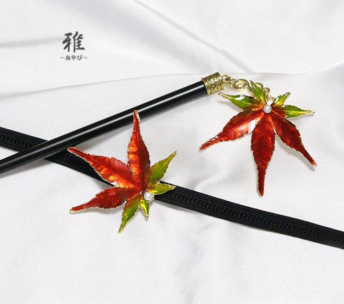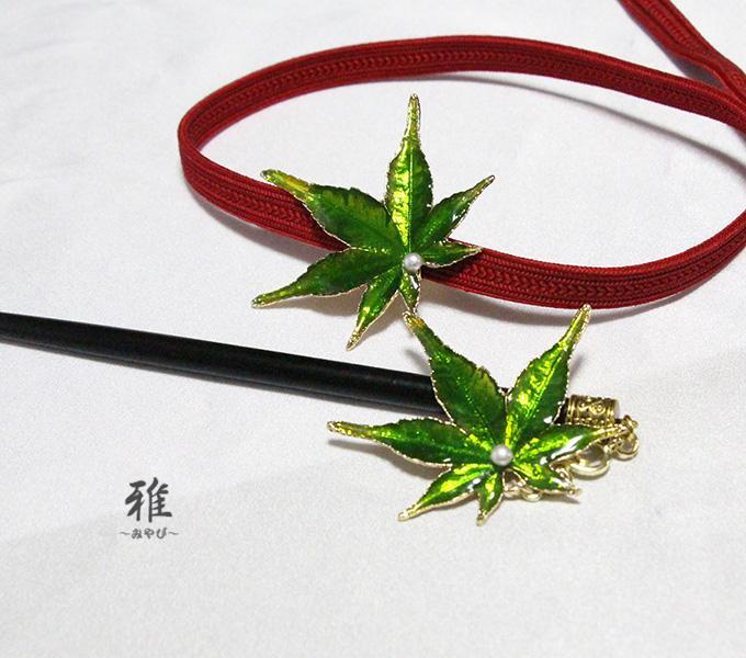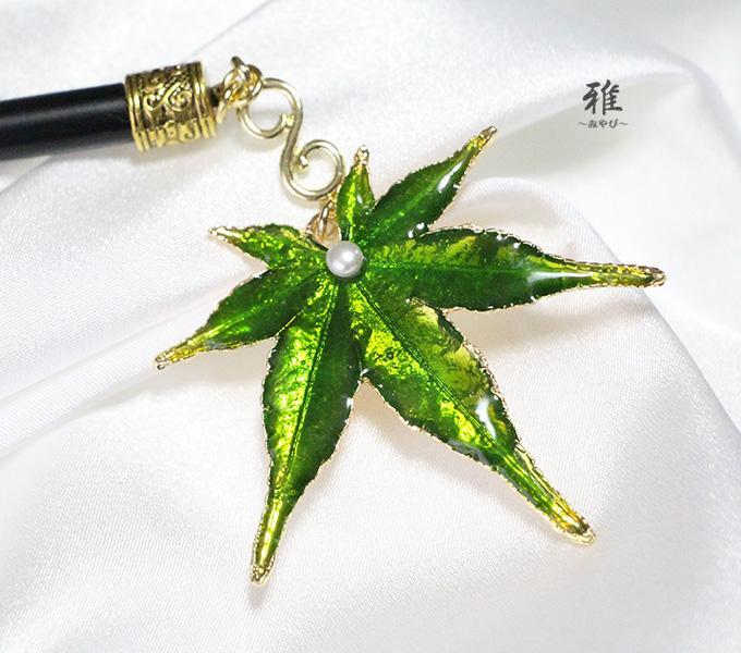 深い緑色が素敵な、秋風漂う紅葉の美しいかんざしをお作り致しました。(*´_`*)