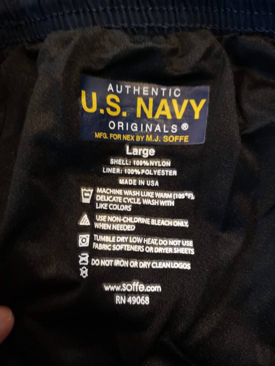 人気のアメリカ海軍のフィジカルトレーニング用ショートパンツが再入荷しました。 ドライリリース素材を使っている為、スポーツ等体を動かすシーンに最適なアイテムです。 ウエストはゴム入りで、更に紐で縛ることもできます。 内側には小さなポケットが付属しており、鍵や小銭が入れられる他、パンツの両サイドにもポケットが付いています。左裾にあるNAVYの文字はリフレクタープリントとなっております。 ワークウェアだけでなく、部屋着としても快適な1枚です。 素材 シェル:ナイロン ライナー:ポリエステル サイズ S ( ウエスト約70-96cm/総丈約48cm/股下約20cm/裾幅約30cm ) M( ウエスト約76-102cm/総丈約49cm/股下約20cm/裾幅約31cm ) L ( ウエスト約82-108cm/総丈約50cm/股下約20cm/裾幅約32cm ) XL ( ウエスト約94-120cm/総丈約51cm/股下約20cm/裾幅約35cm ) ※ウエストは、ゴムが入っておりドローコードで絞ることが可能です。 ネコポス便200円でお送りいたします。落札価格にプラスでお願いします。