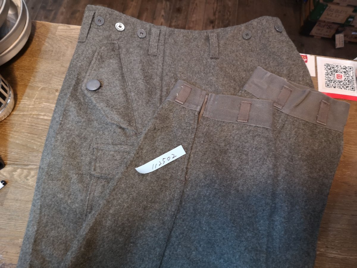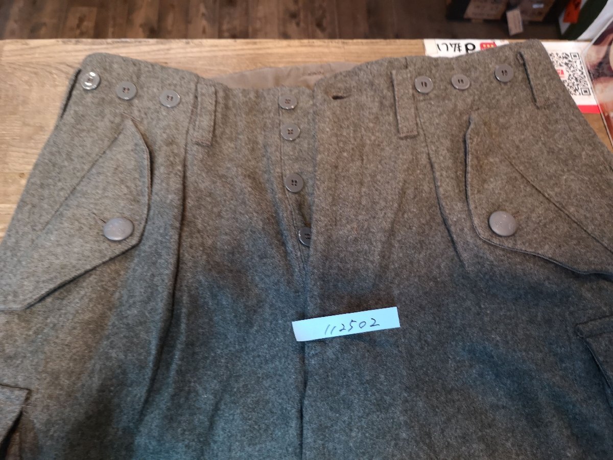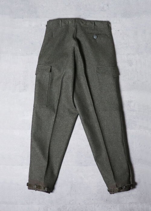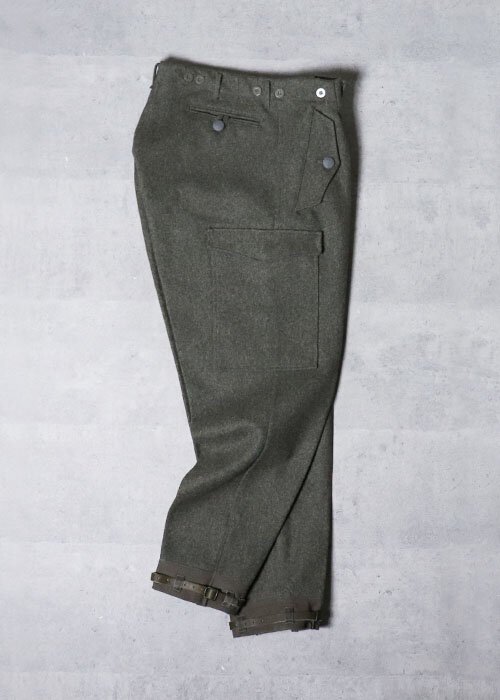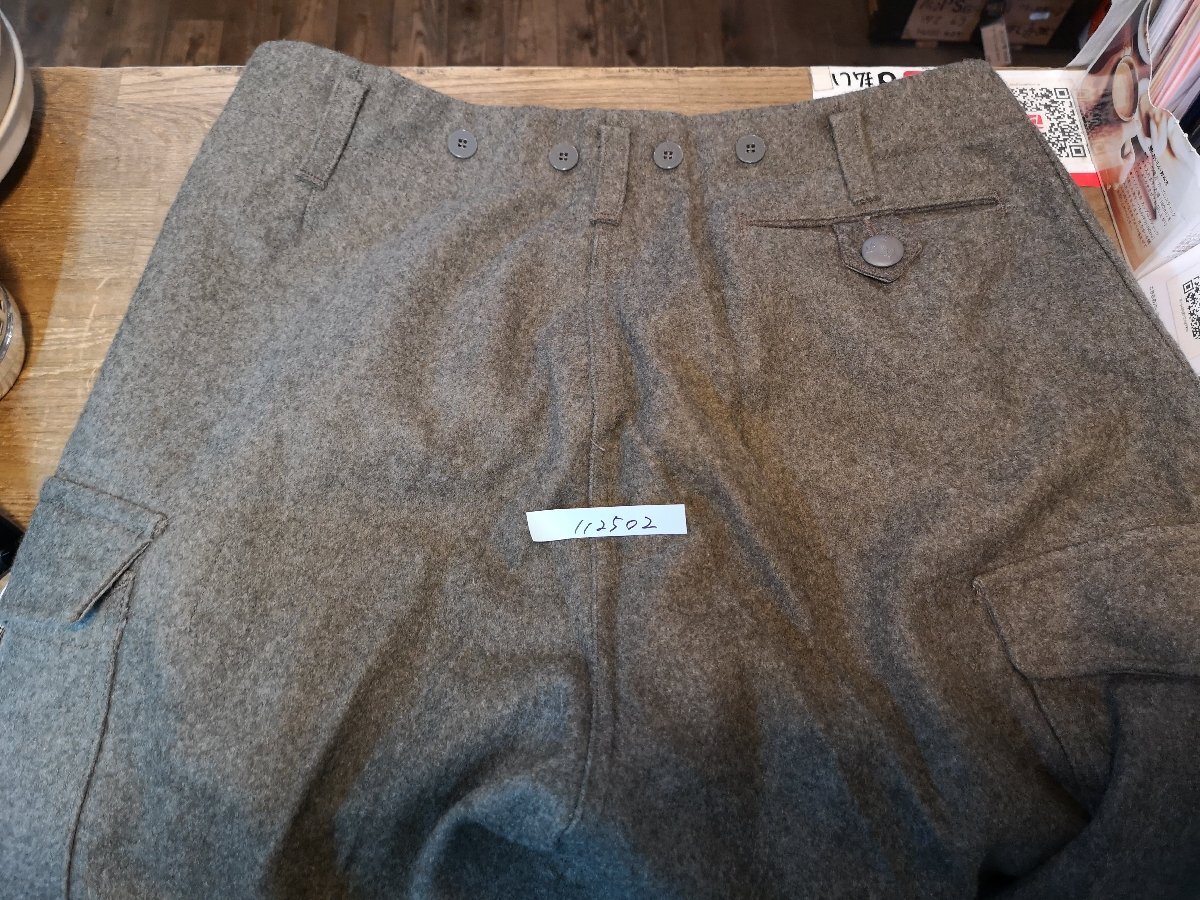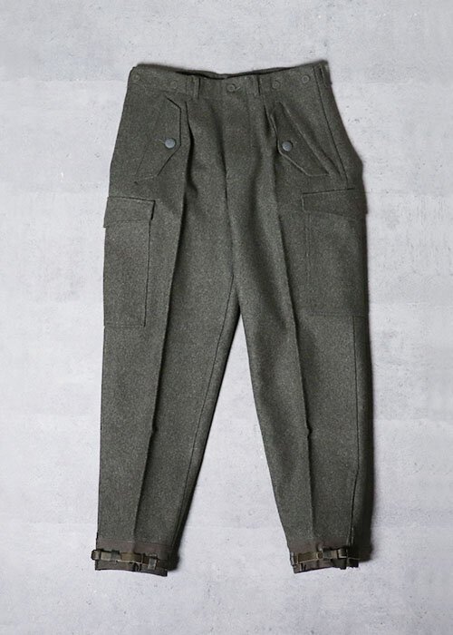 50年代後半から採用さたM38パンツの後継モデル、M58ウールカーゴパンツです。画像の3枚目までは流用です。 生地は肉厚な起毛ウールを使用したカーゴパンツです。 ゆったりとしたヒップ周りから裾にかけてテーパードしたシルエットが特徴的なパンツは、ウエストのサスペンダーボタンやボタンフライの前立てなど、クラシカルな印象のアイテムです。 高密度のウールで保温性が高くアウトドアなシーンにも最適でアーバンスタイルやシティーファッションとしても落とし込みやすいアイテムです。また、ウール地のカーゴパンツは他国でもあまり見かけないデザインです。 近年、スウェーデン軍アイテムの注目度、人気度は増しておりミリタリー市場でも値段の高騰や入手困難なアイテムになってきております。 ●素材:ウール ●状態:デッドストック サイズC46? ウエスト88cm、全長110cm、股下82cm、太腿幅36cm程度です。 沖縄離島を除く全国500円でお送りいたします、落札価格にプラスでお願いいたします。