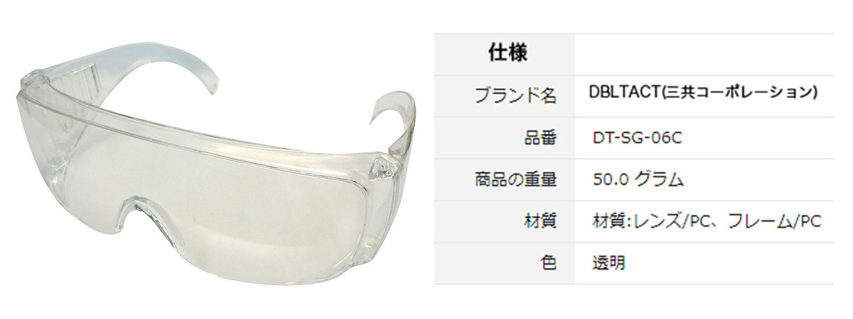 三共コーポレーション/DBLTACT セーフティゴーグル DT-SG-06Cクリア