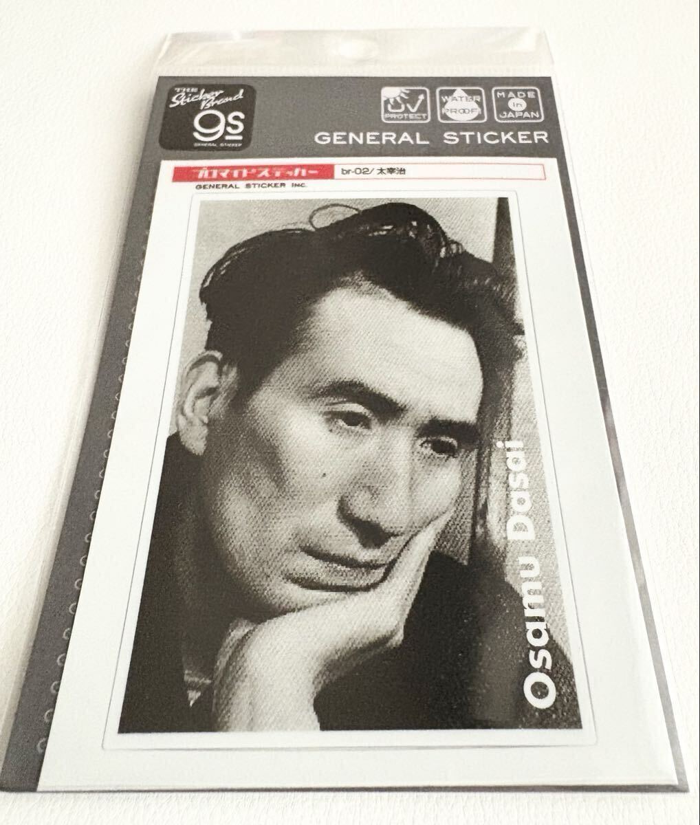 敬愛する文豪・太宰治の肖像をデザインした、ブロマイドステッカーとキーホルダーの2点セットです。