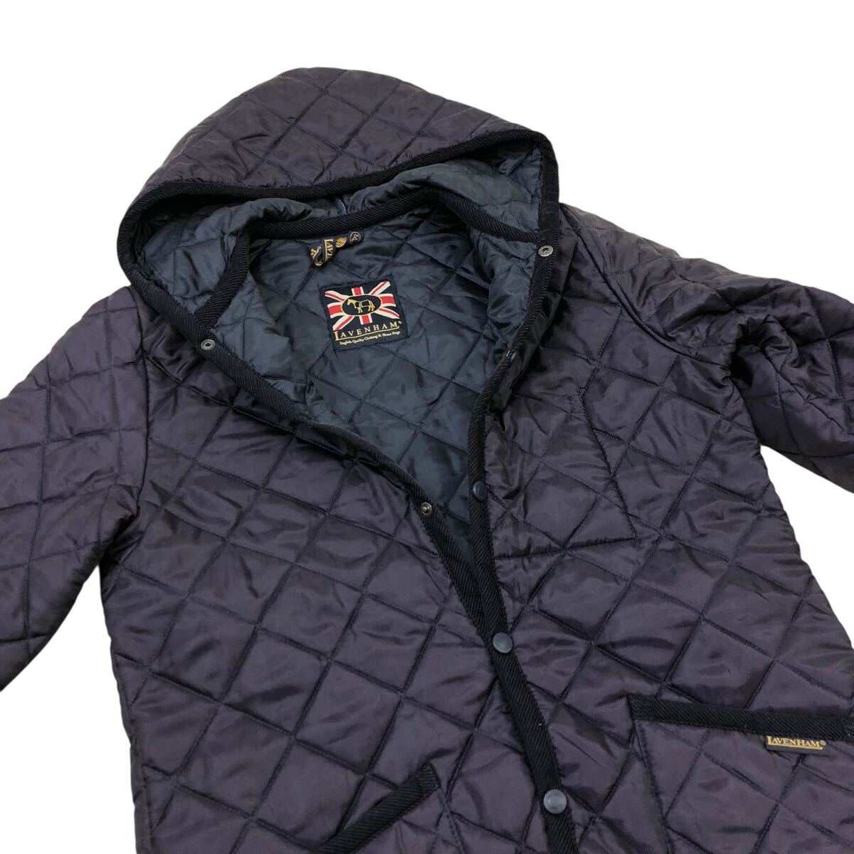 10Nm329-41 イギリス製 LAVENHAM ラベンハム 中綿 キルティング ジャケット フード 上着 羽織り アウター パープル レディース 40